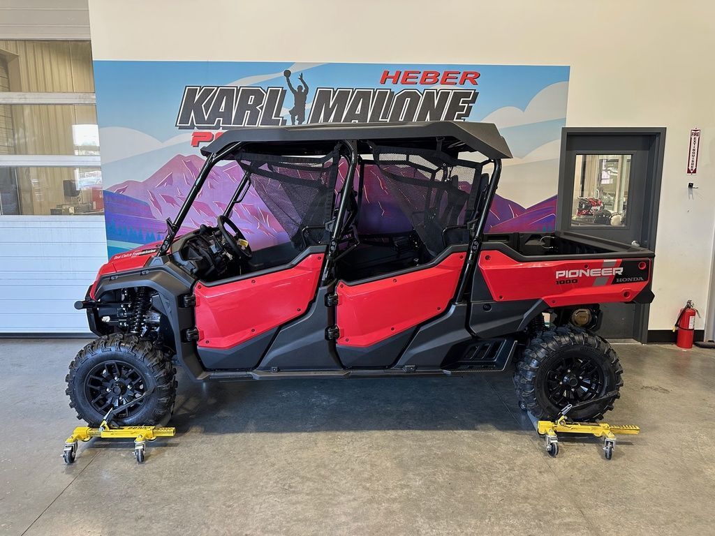 2025 Honda® Pioneer 1000-6 Deluxe Crew Comfort for the whole crew Big on performance. Big on features. Big on capacity. Big on comfort. With room for six in first-class accommodations, while its spacious tilt bed, a 2500-pound towing capacity, and Honda's exclusive automatic DCT transmission fill out the features list. Features may include: Seating capacity for six This side-by-side has a full-sized crew-cab-style back seat with massive leg and foot room for rear passengers. The center seat in the rear is positioned forward to avoid bumping shoulders with other passengers. Powerful 999cc twin-cylinder engine cylinder head design from our motocross and adventure bikes, delivering flagship-level horsepower and torque in a compact package. 1000-pound-capacity tilt bed This SxS features a half-ton of hauling capacity. And when it comes to dumping, we’ve made it easier than ever with a hydraulic assist tilt bed lever. Fully automatic six-speed DCT Drive the way you want with the industry’s first six-speed Dual-Clutch Transmission (DCT). Choose between manual mode or fully automatic. There’s even an easy-to-use tow/haul mode, along with 2WD, 4WD, Differential Lock, and Turf selections. Best-in-class comfort and cabin space The SxS offers unmatched comfort with its increased legroom, staggered rear-center seat, tilt steering wheel, and best-in-class shoulder room. More underseat storage The entire front seat area is open, and there's additional storage space beneath the removable rear seat. These spots are ideal for storing heavy tools, chains, tow straps, and other frequently utilized items. 2500-pound towing capacity Have a big load to haul? This SxS offers 2500 pounds of towing capacity and a full cargo bed. So now, instead of hopping on the tractor or taking out the truck, you can stay right in your side-by-side and tackle those bigger jobs with relative ease.