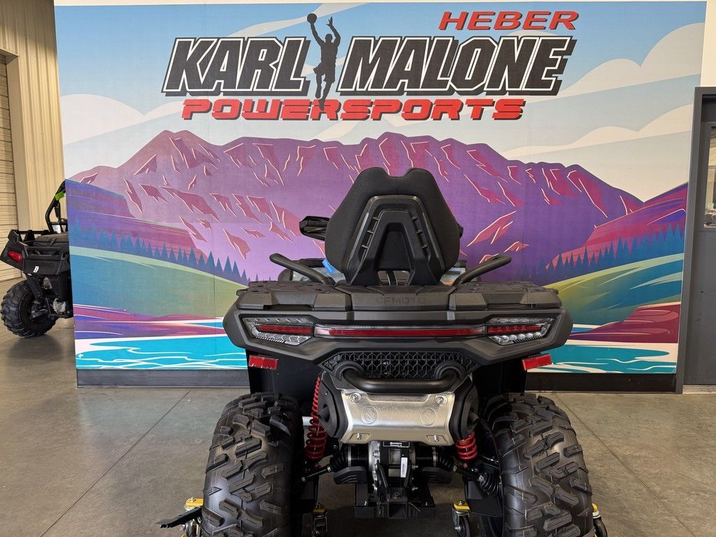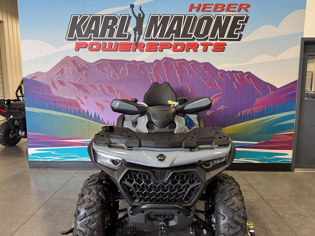 2025 CFMOTO CForce 1000 Touring Enter the all new CFORCE 1000 Touring—a testament to innovation, luxury, and unmatched power—at a price point that leaves other brands crawling back to civilization. Driven by a new bulletproof, high-output twin-cylinder engine that delivers apex power and performance, you’ll conquer challenging trails and blaze new ones like never before. From the all-new engine to the highly adjustable gas suspension to the innovative TFT display, it’s the ultimate touring machine. Features may include: All-New OmniDrive™ CVT Transmission CFMOTO’s in-house designed and manufactured continuously variable transmission (CVT) is built to withstand the rigors of intense use, ensuring longevity and peak performance. Not just stronger, it’s also lighter and more durable. These improvements mean it can handle more torque and stress, translating to a transmission that delivers exceptionally smooth and dependable performance, especially under punishing conditions. Advanced Rider Electronics Rider electronics enhance control, increase safety, and reduce fatigue. The centerpiece is the Downhill Assist Control, a selectable feature that intelligently manages engine braking for a stable descent. Electronic Power Steering (EPS) further refines your ride, offering four selectable modes that respond to speed and steering input, ensuring precise assistance at low speeds and firmer feedback on challenging terrain. Every element is synchronized for optimal control, putting mastery of the machine and the terrain firmly in your hands. State-of-the-Art Tech Package Stay seamlessly connected and in command of your journey with the cutting-edge tech package featuring a 7" TFT display. This intuitive interface keeps you informed, and offers Bluetooth phone connectivity and music controls. With real-time vehicle monitoring, every element of your ATV’s performance is at your fingertips, ensuring a fully informed and confidence-inspiring ride. Fully Adjustable Gas Shock Suspension Take on tough terrain with the CFORCE 1000 Touring’s all-new advanced suspension system, featuring high-pressure gas shocks with piggyback reservoirs for a fully customizable ride. Adjust preload, compression, and rebound settings on both front and rear to your exact preferences for any condition. Specifically designed for a smooth two-up riding experience, the suspension ensures stability for both rider and passenger. Complementing this is a set of robust 14" cast aluminum rims, combining enduring performance with rugged style to elevate your off-road adventures.