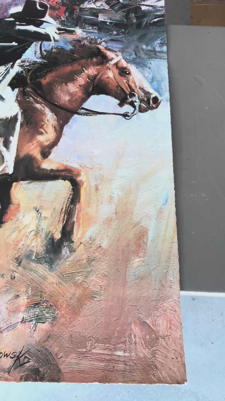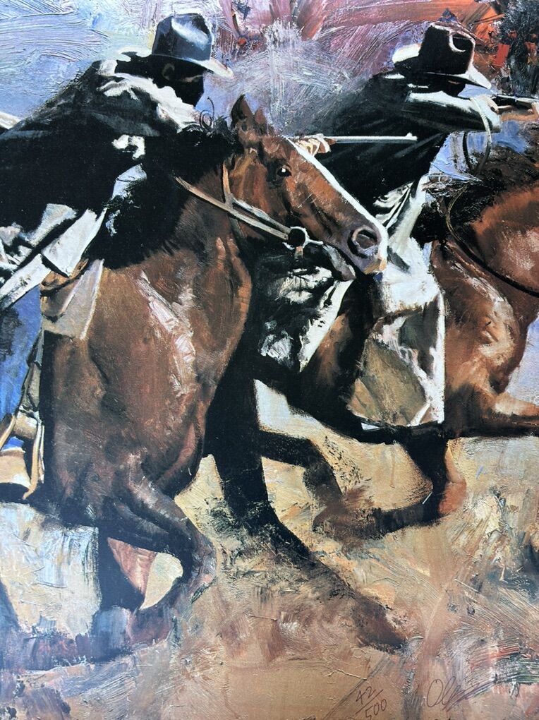 VenmoFine art print hand signed by the artist Oleg Starvrowsky. Size is 36 x 27 Old west robbers on horseback with guns