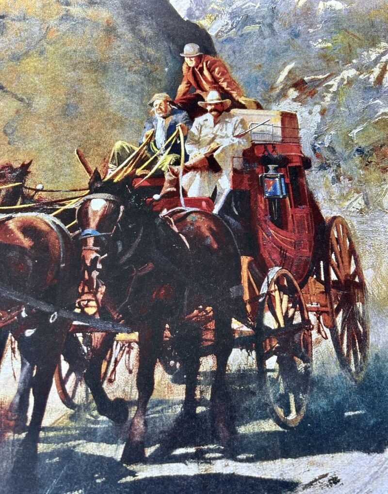 VenmoFine art print hand signed by the artist Oleg Starvrowsky Size 28 x 59 Western art Stagecoach moving through the desert