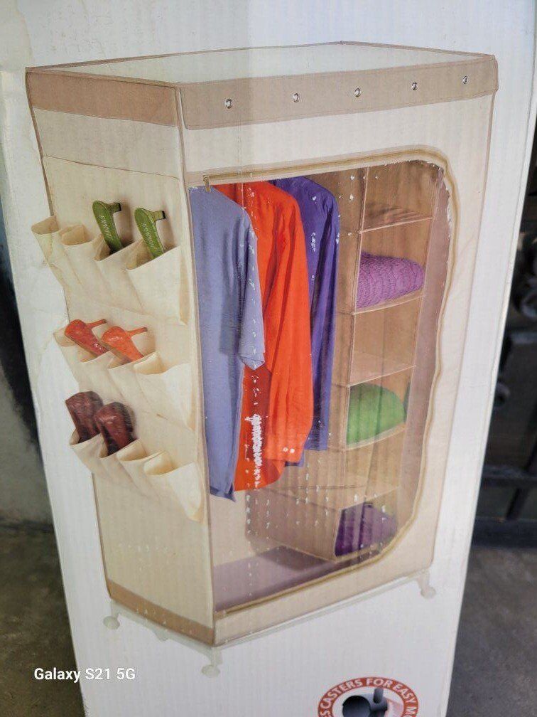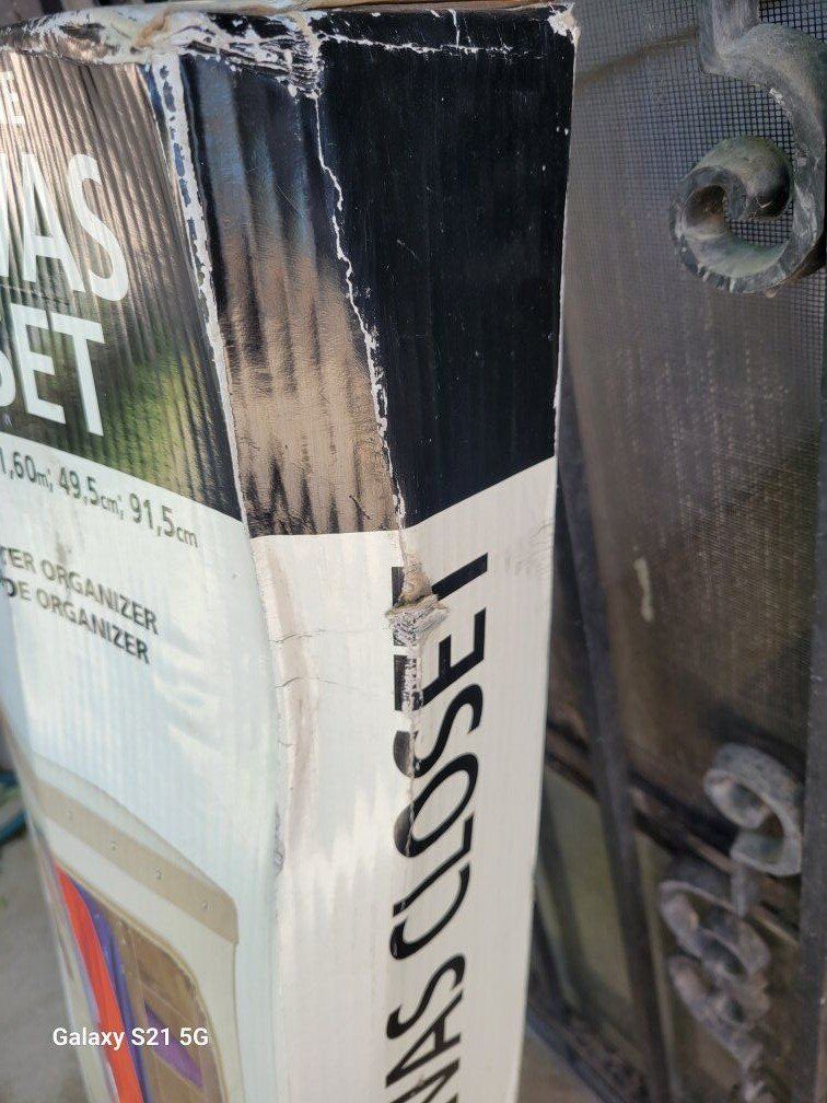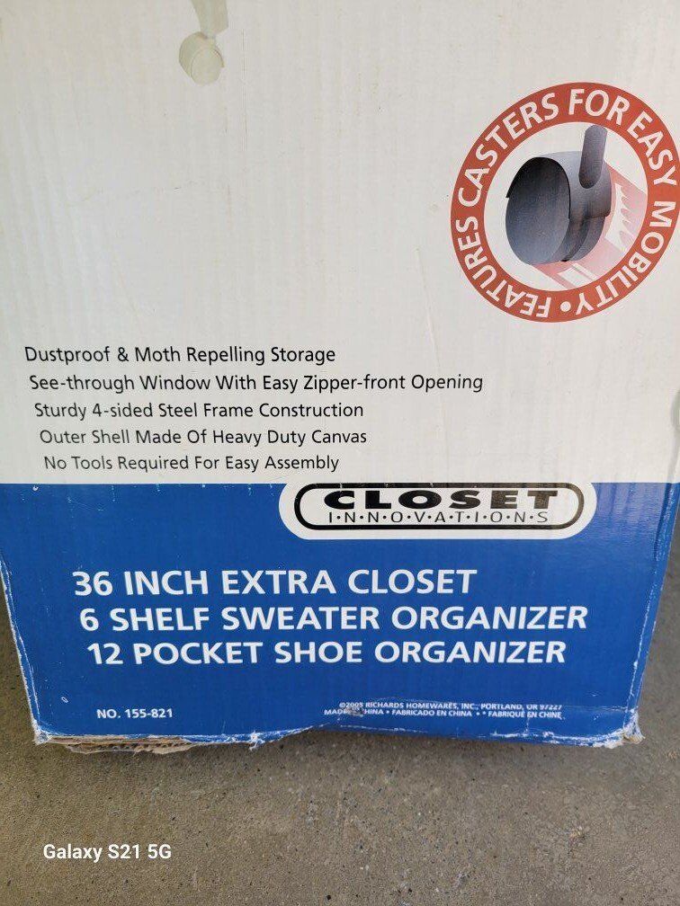 Three in One Canvas Closet never used. Box shows signficant wear. Measurements are in the photos. Item in Provo, cash and pick up only, sry no venmo, please see my other listings. thanks
