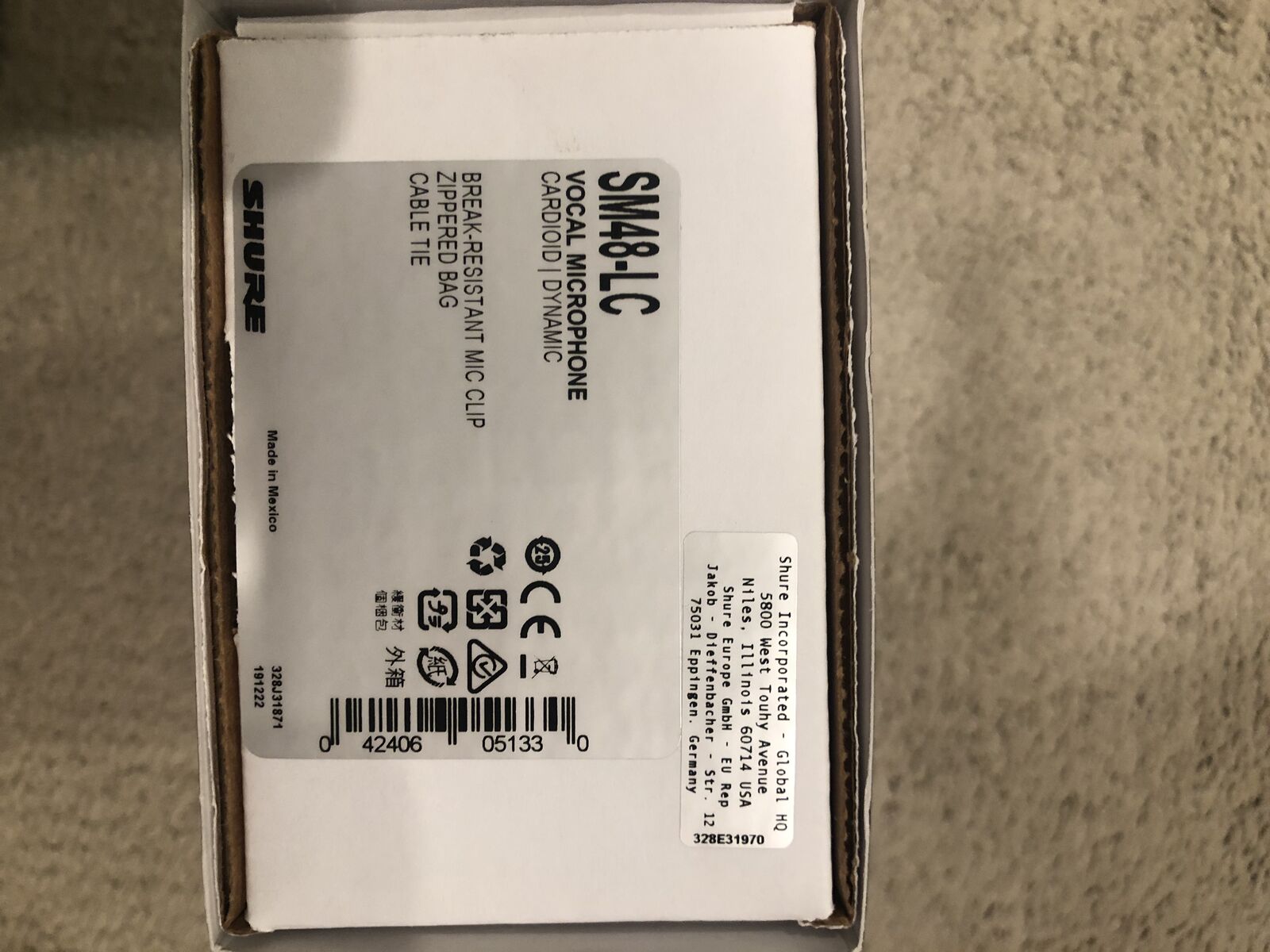 Practically new Shure SM48-LC microphone in excellent condition. Also multiple microphone cords (XLR): 10', 25', 50', and 100' as well as a little 3' splitter (see photos). Prefer to sell all of this as a package.