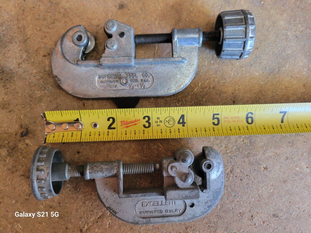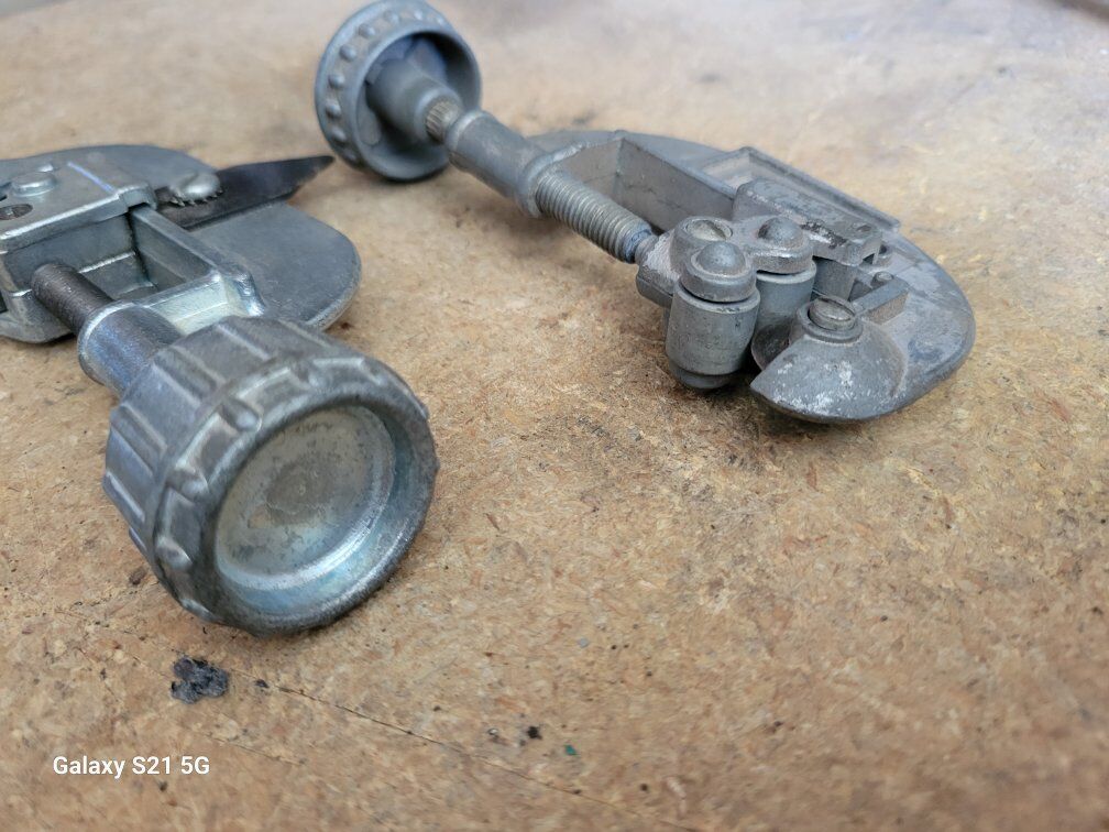 Lot of two Aluminum Pipe Cutters. Please see photos for specifics on size and condition. Item in Provo, cash and pick up only, sry no venmo, please see my other listings, thanks