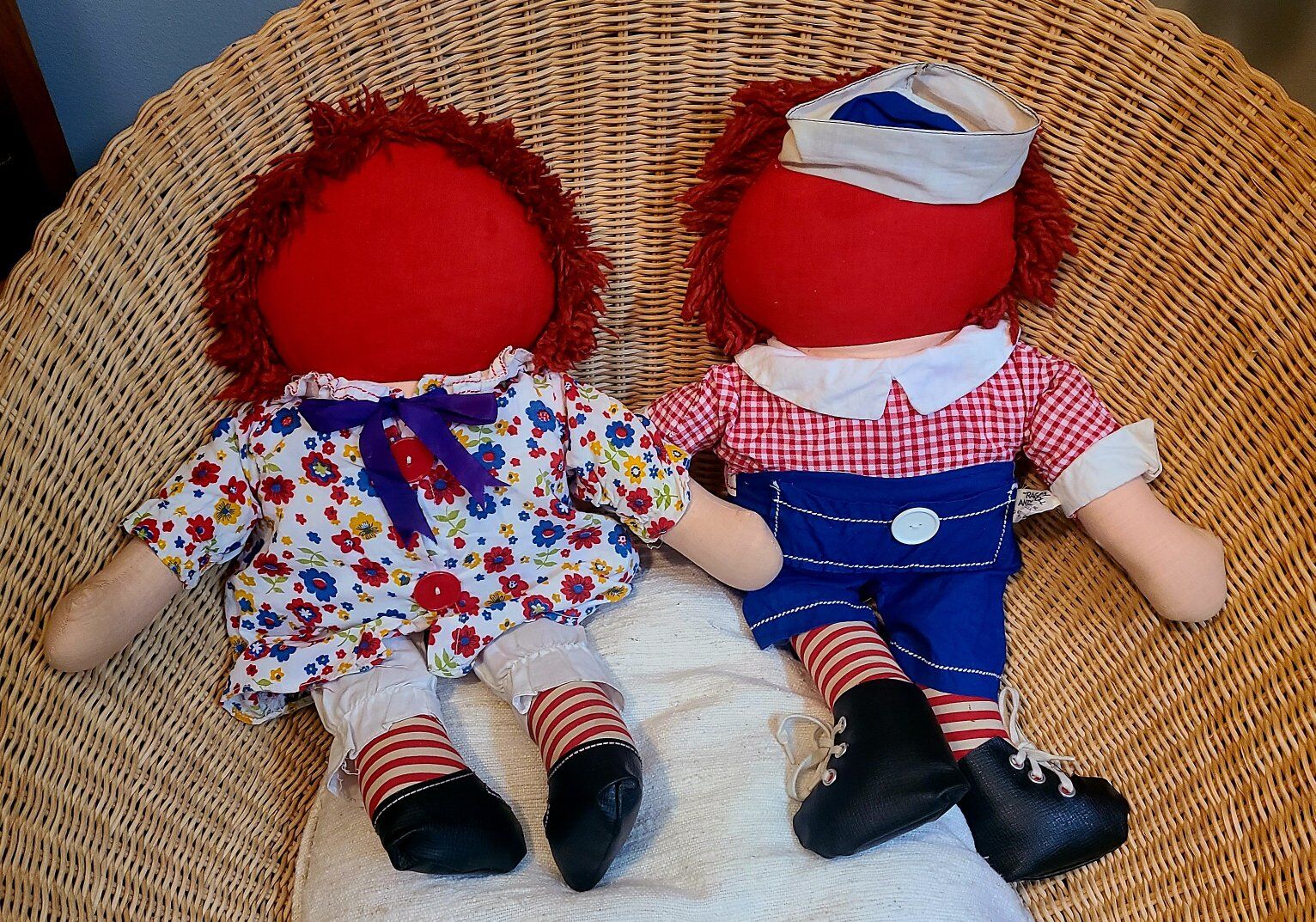 2 dolls are included in the price. I believe they are 1970's They have the "I love You" on them. Knickerbocker brand Some cosmetic imperfections from age.