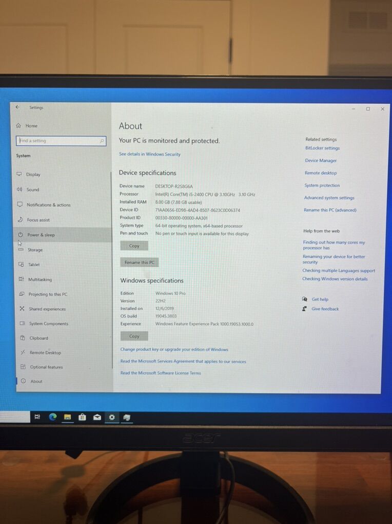 CPU: i5-2400 RAM: 8gb DDR3 PSU: 240w Boot Drive: 120gb ssd Storage Drive: 1tb hdd Other: windows 10 pro, WiFi, Bluetooth, etc.