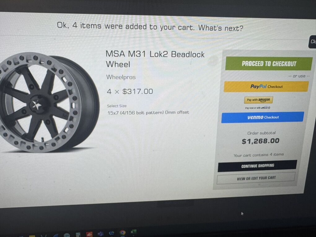 VenmoMSA M31 beadlock wheels / rims, 4/156, 4x156. 15x7 0 offset Sweet wheels just went with color matching. Fits RZR, KRX, and other utvs They do have some scratches