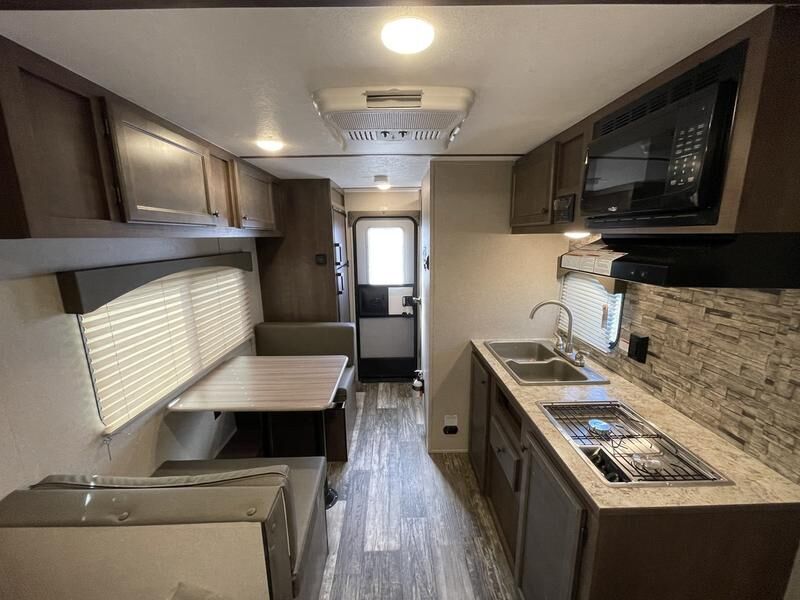 VenmoAmazing camper but do not use nearly enough, about 2 times a year since 2023. Asking $16,900 OBO Let me know if you would like to come by and check it out. This model is outfitted with the Elite Package which includes: -Murphy Bed Layout -Additional 100W Solar Panel -32 HDTV mounted -6lift with 32 tires and powdercoated wheels -Power Tongue -2 side and rear Power Awning -Stove with oven range -6 side heat foil -Gas/Electric DSI water heater OVERALL CAMPER BUILD SPECS BELOW: Wood Studs built 16” On Center 5/8” One-piece Floor decking 3/8” Roof decking – FULLY WALKABLE .024” Aluminum Siding One-piece PVC Roof Membrane Residential Insulated Walls, Front & End Diamond Plate Rock Guard Powder-Coated Steel Chassis Front & Rear Stabilizer Jacks Radial Tires Spring-Leaf Dexter Axles Spare Tire with Carrier (Where Available) 100W Solar Panel Installed w/ Controller Battery Disconect Ladder Prep Aluminum Rims (Std. Tires) Comfort StandardsA/C & Furnace 6 Gallon DSI Gas Water Heater 2 Burner Stove Top Range Hood with Light & Fan Stove & Sink Cover Refrigerator Microwave Tinted Safety Glass Windows w/ Nightshades Quick Connect Gas Line Outside Shower Fire Extinguisher Smoke Detector Carbon Monoxide Detector 2 – 20 pound LP tanks Backup Camera Prep Power Vent in the Bathroom Solid Step (Rear Door Models Only) Bunk Above Bed (16BH, 18RD ONLY) Entertainment Standards Inside/Outside Speakers Bluetooth Radio Cable/Satellite Hook Up USB Port Backers for TV mount LED Lights Power Awning Wineguard HDTV Antenna
