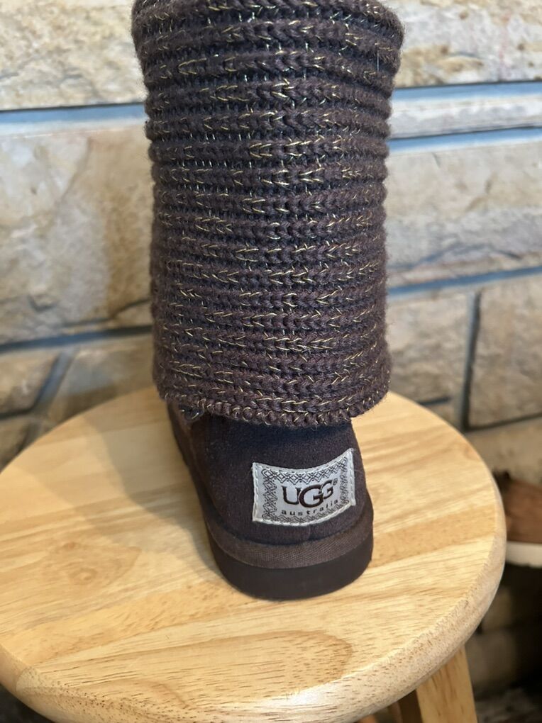 PayPalWomen’s Ugg boots in Excellent, like New Condition!! Ladies 8. Brown with Gold inlay. You get 2 different styles with Tall and Mid lengths!! Call with questions!!