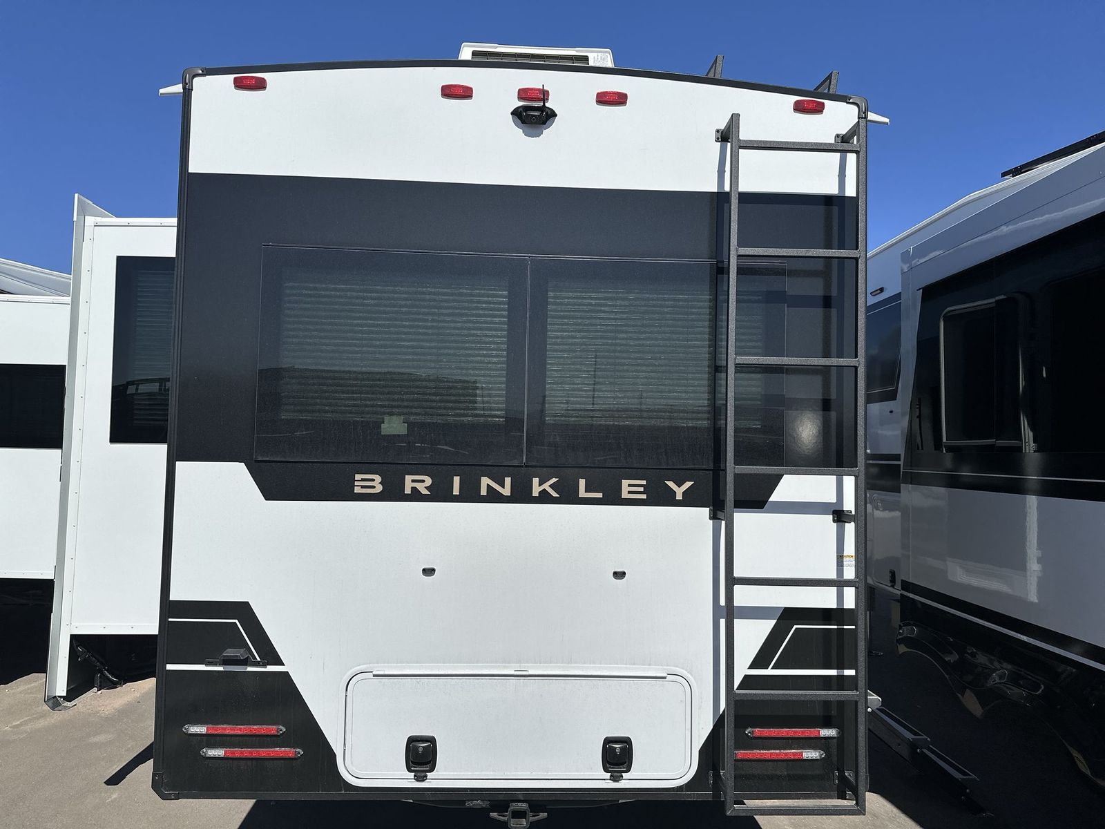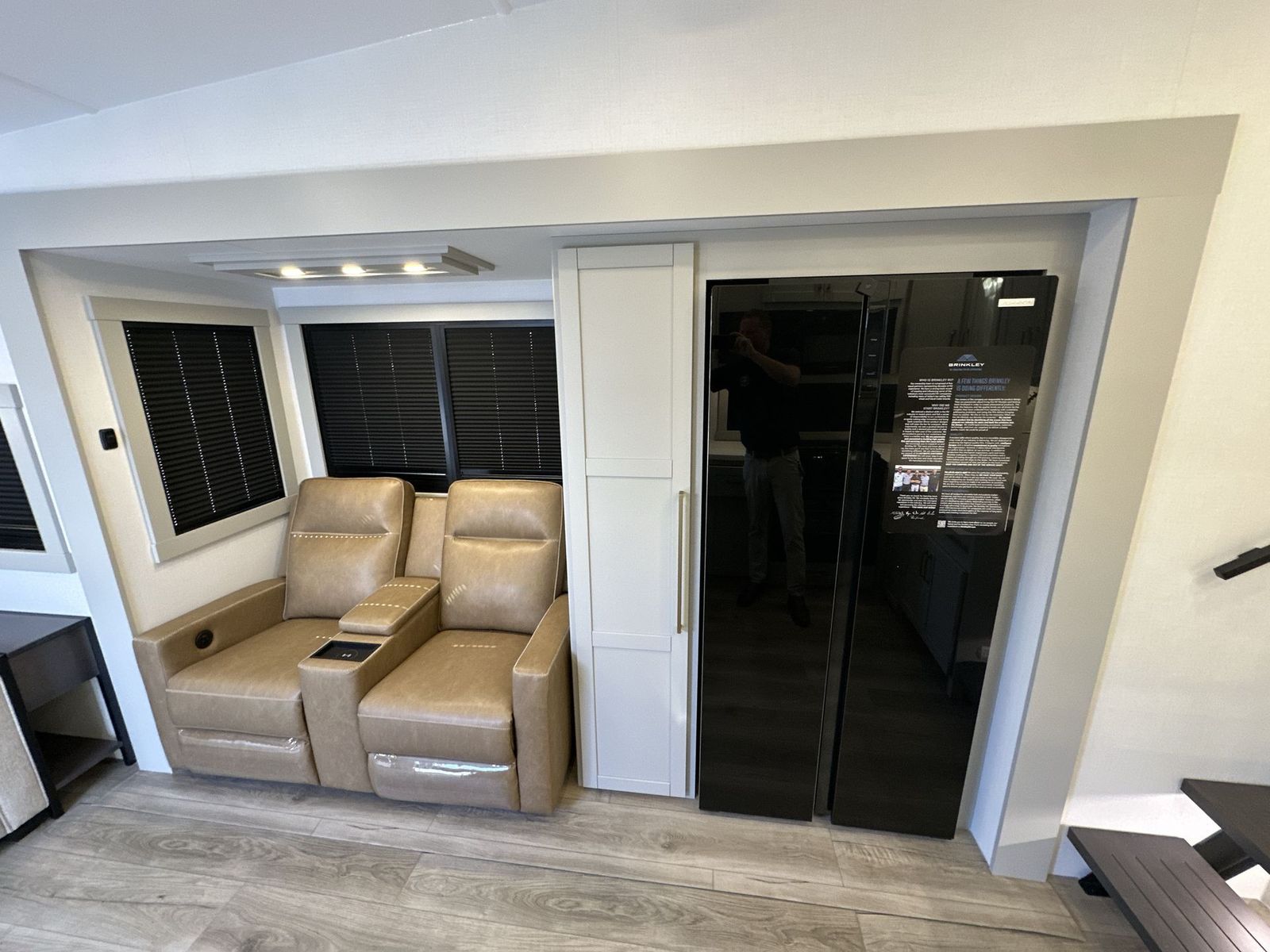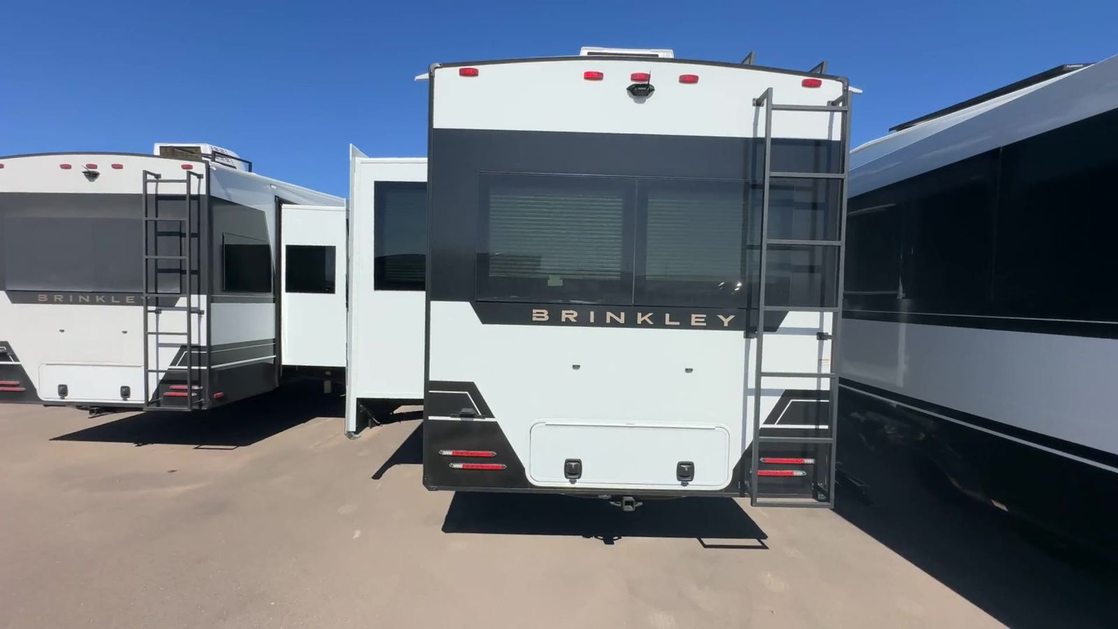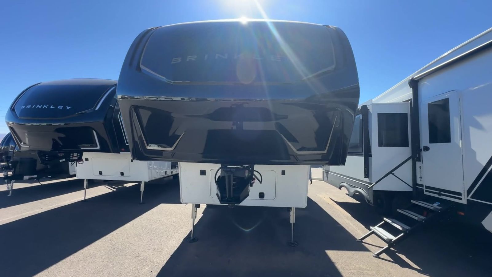 Brinkley Model Z fifth wheel 2670 highlights: 50" Articulating TV 12V Outdoor Refrigerator Queen Bed Pantry with Drawers You'll love every minute spent in this luxury fifth wheel! Your crew can get comfortable in the rear living room on the 72" tri-fold sofa that converts to a 62" x 70" bed, or on the theater seating within the slide out. There is also a sliding dining table and a TV with swivel so everyone can have a good view of the movie. A full kitchen, complete with a cooktop, 30" residential microwave, and 16 cu. ft. refrigerator will let you cook and store food, and there is a handy trash bin with a Stow N' Go paper towel holder for easy clean up. The full bath will let you freshen up before heading to bed in the front private bedroom! The Brinkley mid-profile Model Z fifth wheels bring you clean lines and an upscale look with plenty of style and exciting new features like the industry first brass plumbing connections.These units also feature an automotive grade front cap, plenty of exterior storage, dual exterior hot and cold showers, and wide stance leveling jacks for easy set up.Residential frameless windows provide a clean look and beautiful views, and ample electrical outlets and USB/USB-C outlets allow all of your electronics and appliances to easily be used and charged.