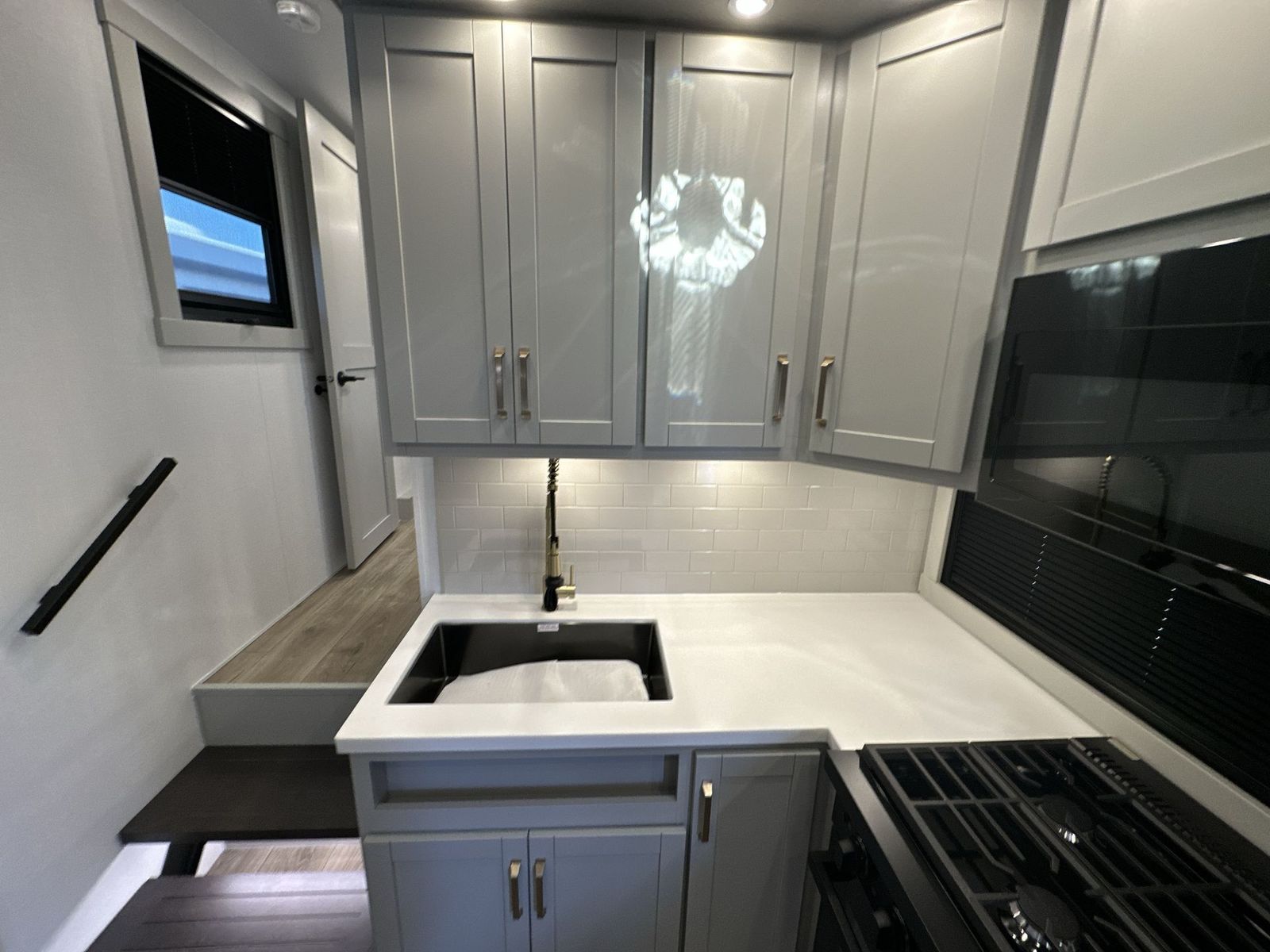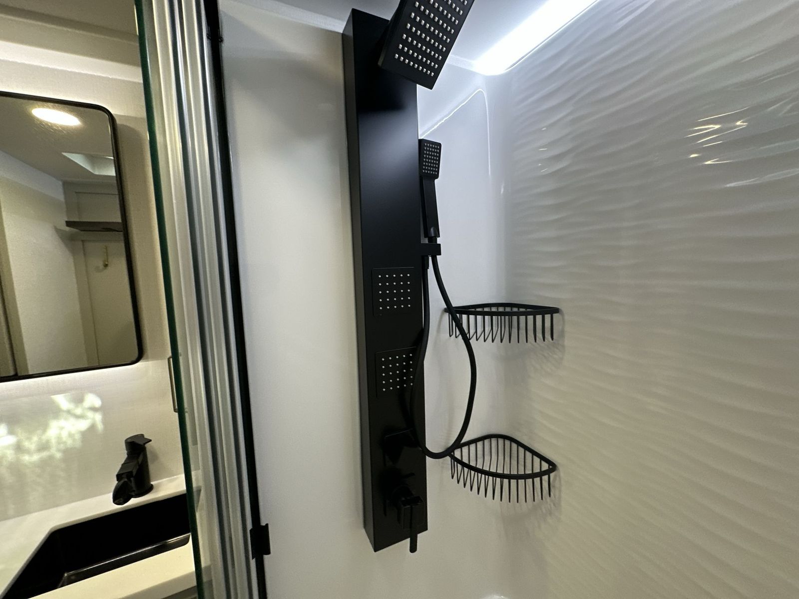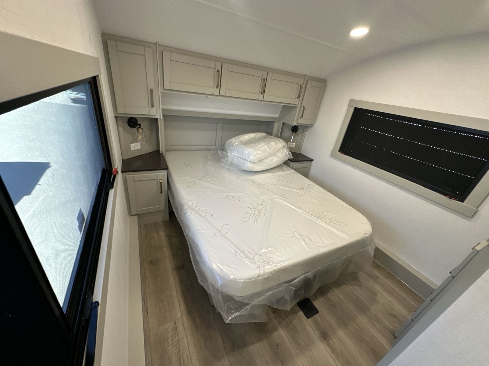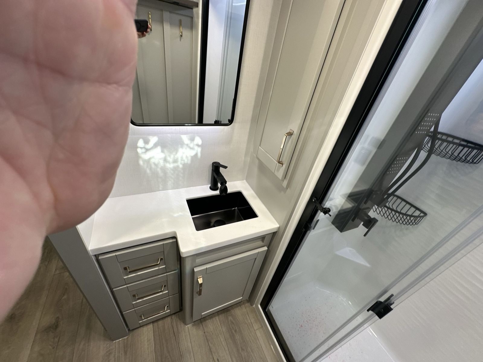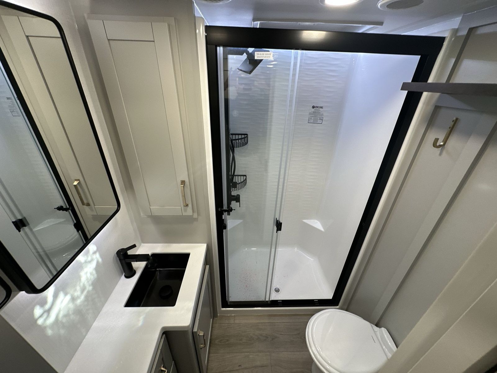 Brinkley Model Z fifth wheel 2670 highlights: 50" Articulating TV 12V Outdoor Refrigerator Queen Bed Pantry with Drawers You'll love every minute spent in this luxury fifth wheel! Your crew can get comfortable in the rear living room on the 72" tri-fold sofa that converts to a 62" x 70" bed, or on the theater seating within the slide out. There is also a sliding dining table and a TV with swivel so everyone can have a good view of the movie. A full kitchen, complete with a cooktop, 30" residential microwave, and 16 cu. ft. refrigerator will let you cook and store food, and there is a handy trash bin with a Stow N' Go paper towel holder for easy clean up. The full bath will let you freshen up before heading to bed in the front private bedroom! The Brinkley mid-profile Model Z fifth wheels bring you clean lines and an upscale look with plenty of style and exciting new features like the industry first brass plumbing connections.These units also feature an automotive grade front cap, plenty of exterior storage, dual exterior hot and cold showers, and wide stance leveling jacks for easy set up.Residential frameless windows provide a clean look and beautiful views, and ample electrical outlets and USB/USB-C outlets allow all of your electronics and appliances to easily be used and charged.