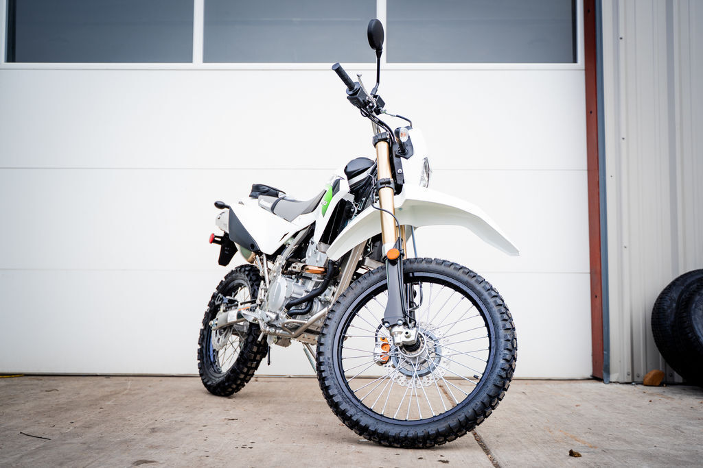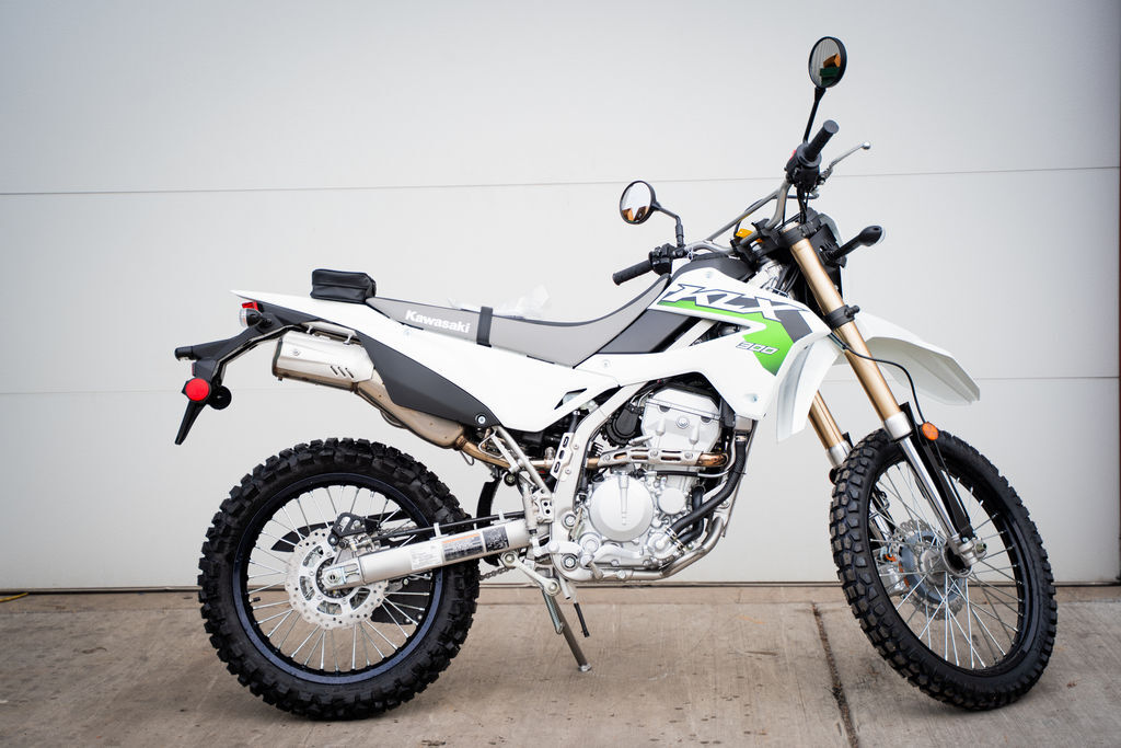 2026 Kawasaki KLX®300 GET OUT AND PLAY The KLX®300 is a highly-versatile lightweight dual-sport motorcycle that keeps going when the road ends. Delivering quick-revving power and versatile performance, this highly capable bike is ready to take the adventure to paved streets, backroads, trails, and beyond. Wherever you ride, the fun is endless on the KLX300. Features may include: POWER AND PERFORMANCE GET THE POWER TO PLAY At the heart of the KLX®300 ultimate lightweight dual-sport, is an enduro-inspired 292cc engine, fuel-injected and liquid-cooled for consistent performance even when the action heats up. This DOHC 4-stroke engine boasts a strong low- and mid-range, with exhilarating top-end pulling power. Power delivery is smooth and throttle response is crisp throughout the rpm range making this the ideal machine for a variety of riding situations. For added comfort especially in heavy traffic, the innovative radiator fan directs hot air down and away from the rider, improving rider comfort. Electric start offers easy starting; fuel injection helps with reliable starting in a wide range of conditions and contributes to improved fuel economy. DUAL-SPORT CAPABILITY EXPERIENCE ON- AND OFF-ROAD THRILLS The KLX®300 highly versatile motorcycle exhibits agile maneuverability whether on- or off-road thanks to a slim, lightweight perimeter frame. The caster angle (26.7°) and short wheelbase contribute to quick handling, while the high rigidity of the frame ensures straight-line stability. Long-travel suspension is trail-tuned and offers 10 in of travel up front and 9.1 in in the rear. The 43mm inverted cartridge-style front fork has adjustable compression damping to optimize fork performance for conditions and personal preference. The Uni-Trak® rear suspension offers bump absorption, compression and rebound damping adjustability, and fully adjustable preload, allowing riders to tailor shock settings to personal preference. Substantial braking power comes from a powerful 250mm petal disc and twin-piston caliper up front and a 240mm petal disc and single-piston caliper in the rear. Strong dual-sport performance is further enabled with a 21-in front wheel and 18-in rear wheel. Wheel rigidity contributes to light, smooth handling and offers great durability for off-road riding. COMFORTABLE ERGONOMICS RIDE IN COMFORT The KLX®300 dual-sport’s rider-friendly ergonomics closely align with the KLX®300R off-road motorcycle, offering an upright and relaxed riding position. Footpegs are positioned closer to the bike’s centerline for optimal riding comfort during on- and off-road excursions. Complementing adventure capabilities is a thick-padded seat that provides comfort on longer rides, while the 35.2-in seat height allows riders to comfortably reach the ground at stops for added confidence. The shroud design allows smooth transitions when shifting, enabling riders to feel more at one with their machine when cornering. < ADDITIONAL: Lightweight perimeter frame Full-size 21-in front / 18-in rear wheels Powerful petal disc brakes LED headlight Heat management for rider comfort Comfortable ergonomics