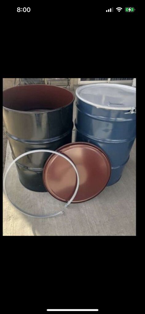 Venmo55 gallons metal barrels with full opening top and metal ring very clean good condition food grade $ 25 each (801)368-7016 sorry no code