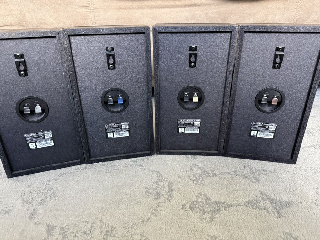 ApplePaySelling a set of Onkyo SK-560 speakers in great working condition! It is missing the front right speaker but you can pick one up on eBay for a good price if you want one! Comes with Surround Right & Left, Surround Back Right & Left, Center, and Front Left! Wall mounts on each one. No trades. Call or text anytime!