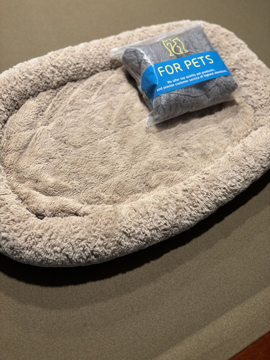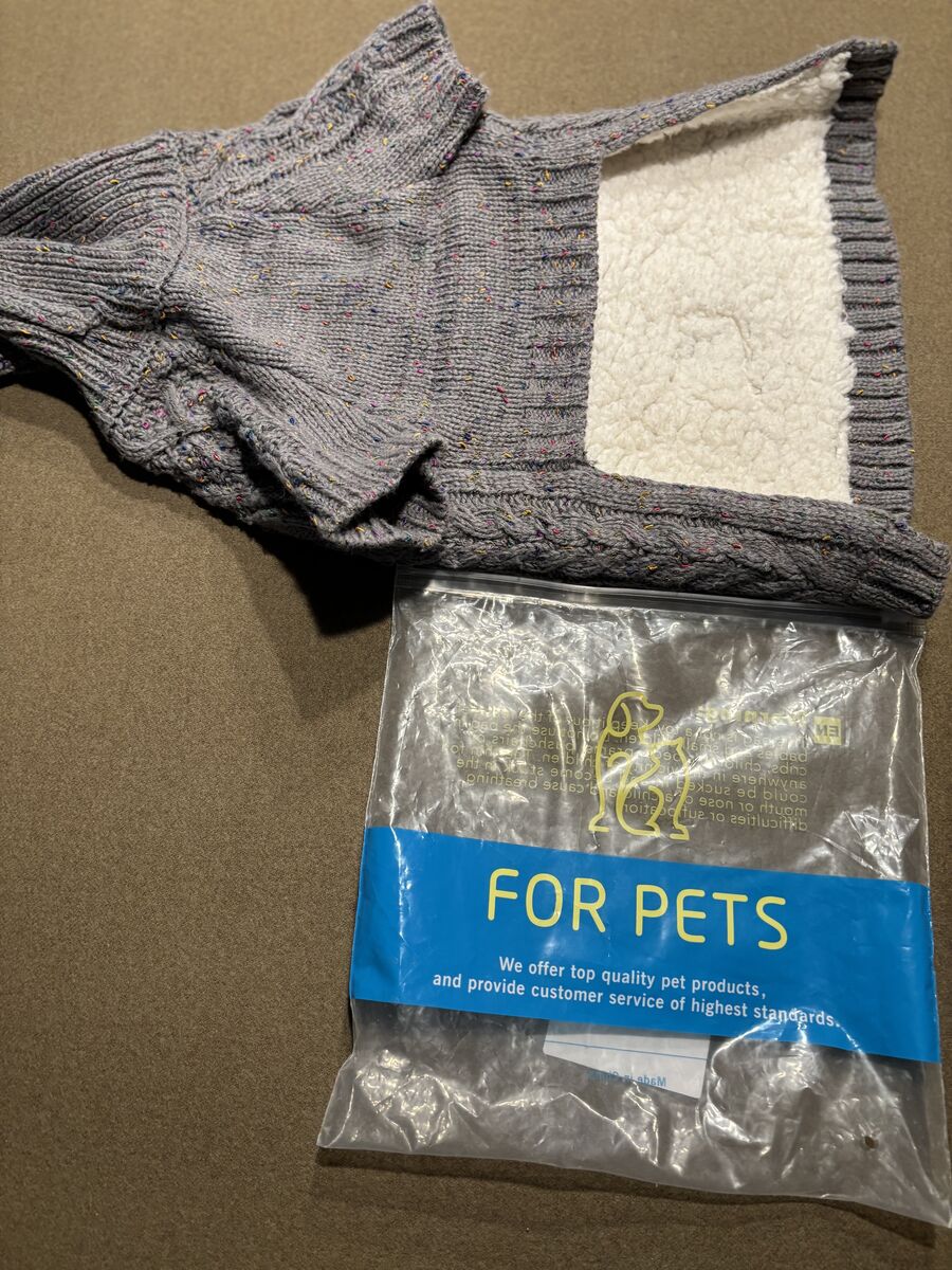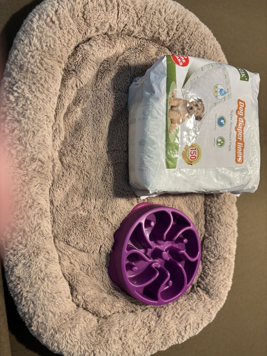 VenmoDoggie necessities - New Winter sweater (never used) size: small/Medium. Dog pads/150 for pups/small dogs (unopened package). Slow-eat dish/used (slows them down from gobbling food so fast)? Very soft dog pad/bed (see measurements) 29"L x 20"W/great condition. Asking: $43.00 for all four (4) items.
