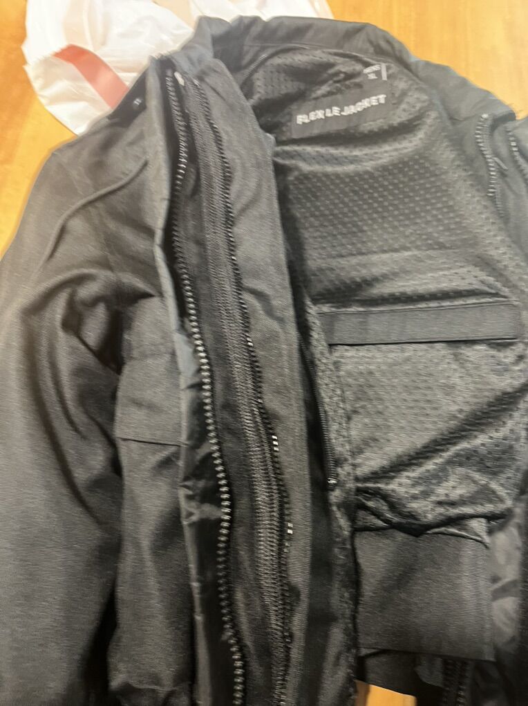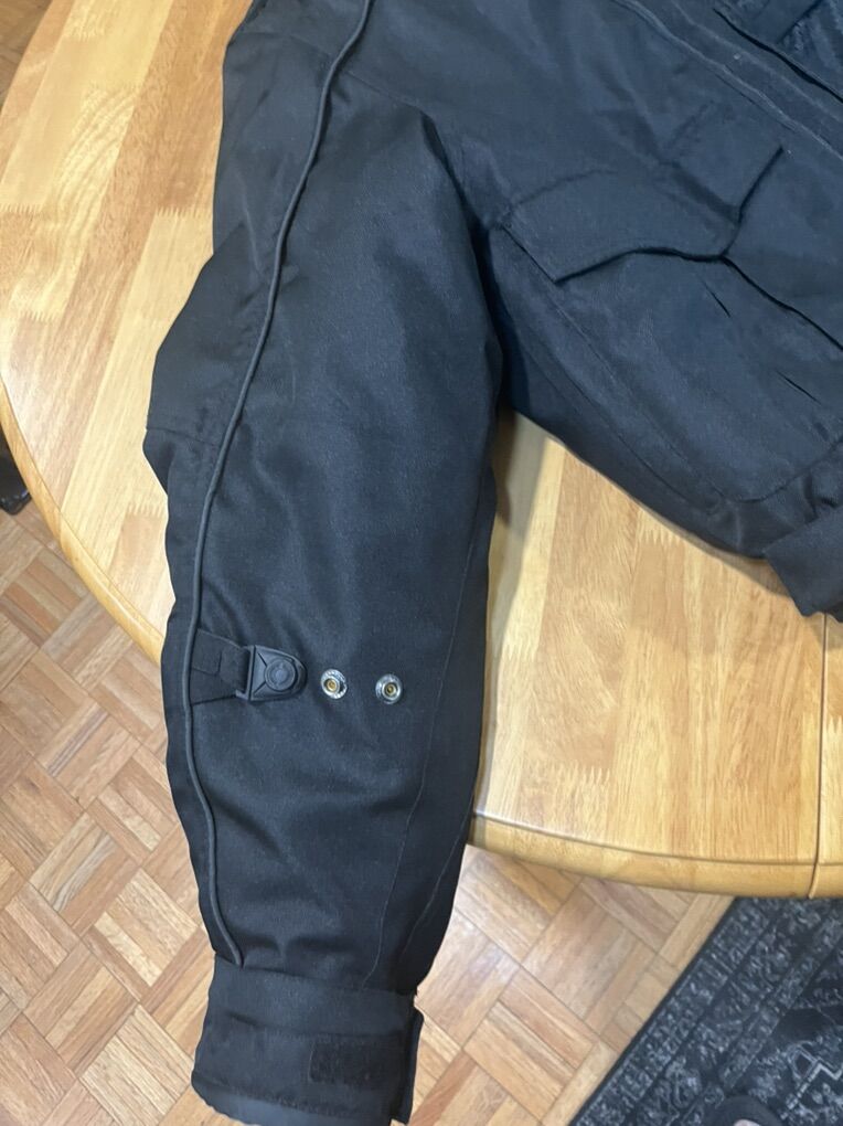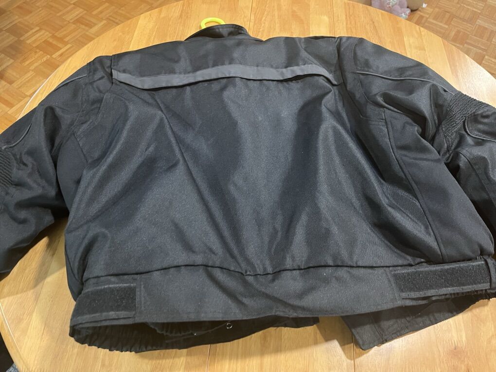 VenmoThe jacket was worn once, but like new. It is water resistant and have waterproof liner. It is all weather and have removable liner. Color is black. The jacket is designed for durability, comfort and protection for motorists. Textile jacket is size men XL