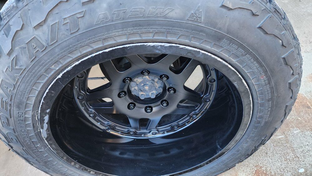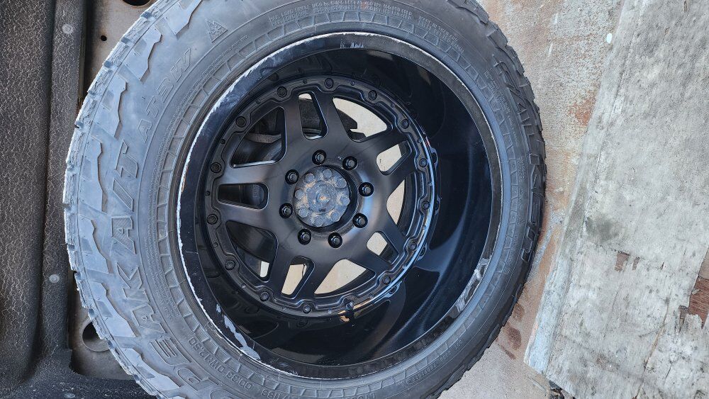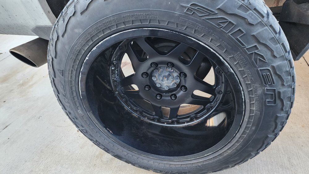 I have a set of gear off road 744b wheels with falken wildpeak at3w 305/55r20 tires the wheels all have curb rash but the tires still have over 80% tread left I'm asking $850 or best offer
