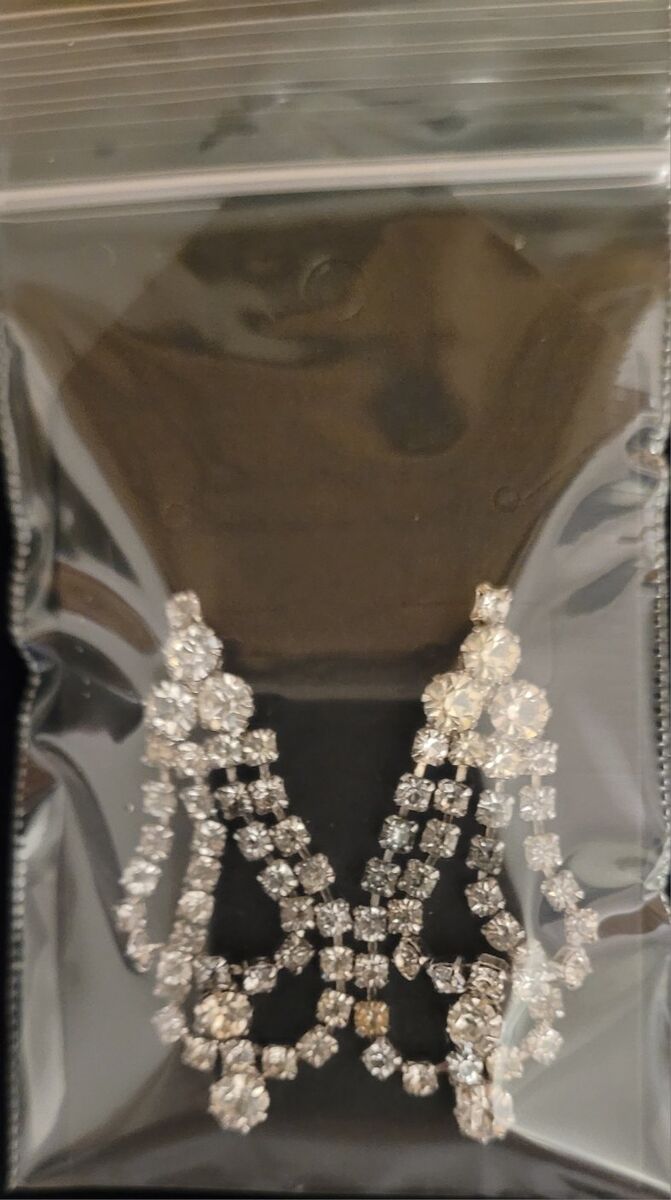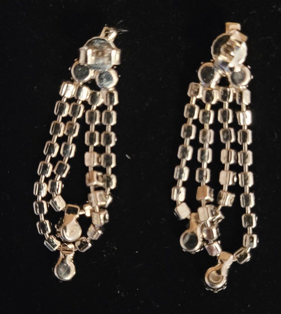 Rhinestone Dangle Pierced Earrings, Silver tone, Vintage