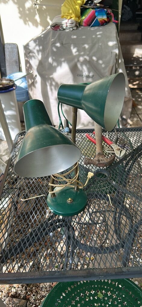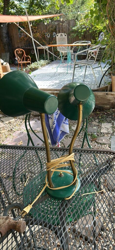 Vintage mid century modern green double goose desk lamp