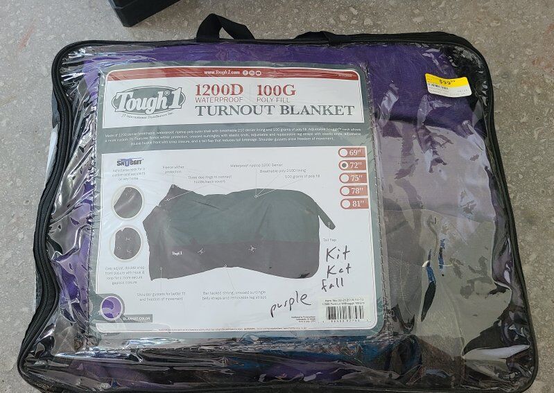 VenmoI have 5 various horse blankets for sale. (1) new tough 1 size 72. 1200d 100g fill turnout blanket $75 blue color (1) used 1 winter-- tough 1 size 72. 1200d 100g fill turnout blanket $50 purple color (2) new tough 1 stable sheets 420d size 72 $30 blue color size 69 $25 purple color color (1) new professionals choice comfort fit Fly sheet size 72 $75 grey color