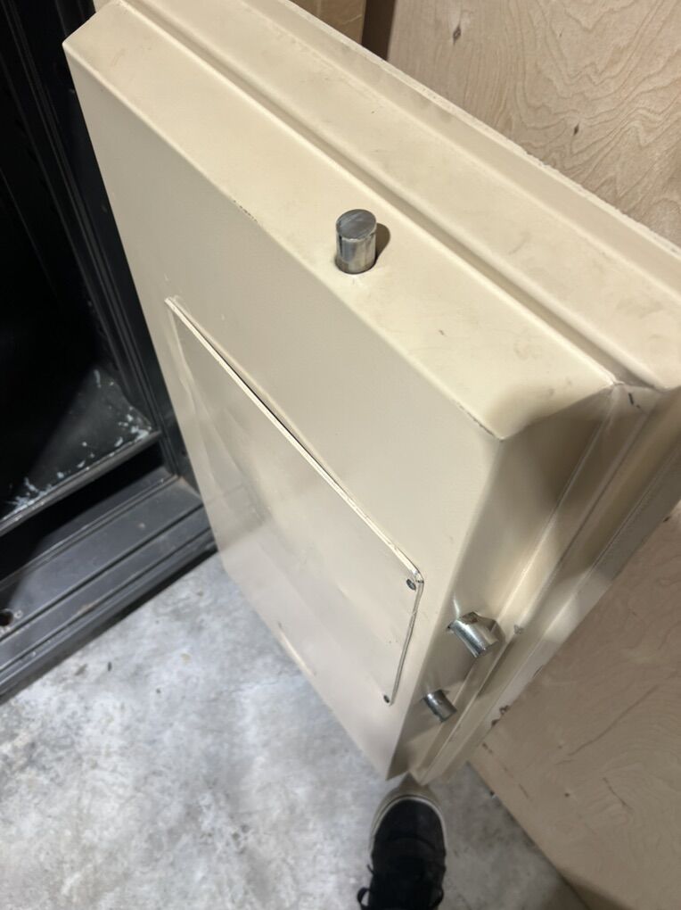 42 1/2 inches tall x 23 1/2 inches wide x 20 1/2 inches deep. No shelves. Previously used to store canvas bags of silver dimes and Quarters, Gold bars and coins and some hand guns. Weighs about 800 lbs. I have 2 keys to unlock after you’ve dialed the combination. Originally purchased for $1,600. Have now upgraded to a 4x bigger safe. Great for a starter safe to protect your valuables and your kids from hand guns or shorter guns like an Uzi. $25 delivery fee from Utah county up to SLC County to your garage if interested.