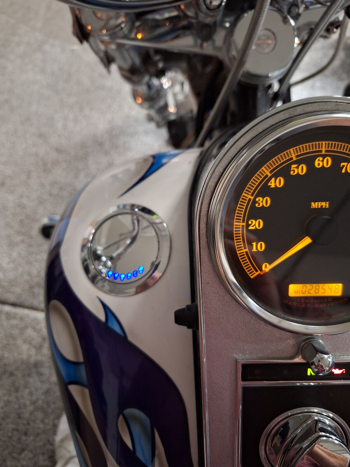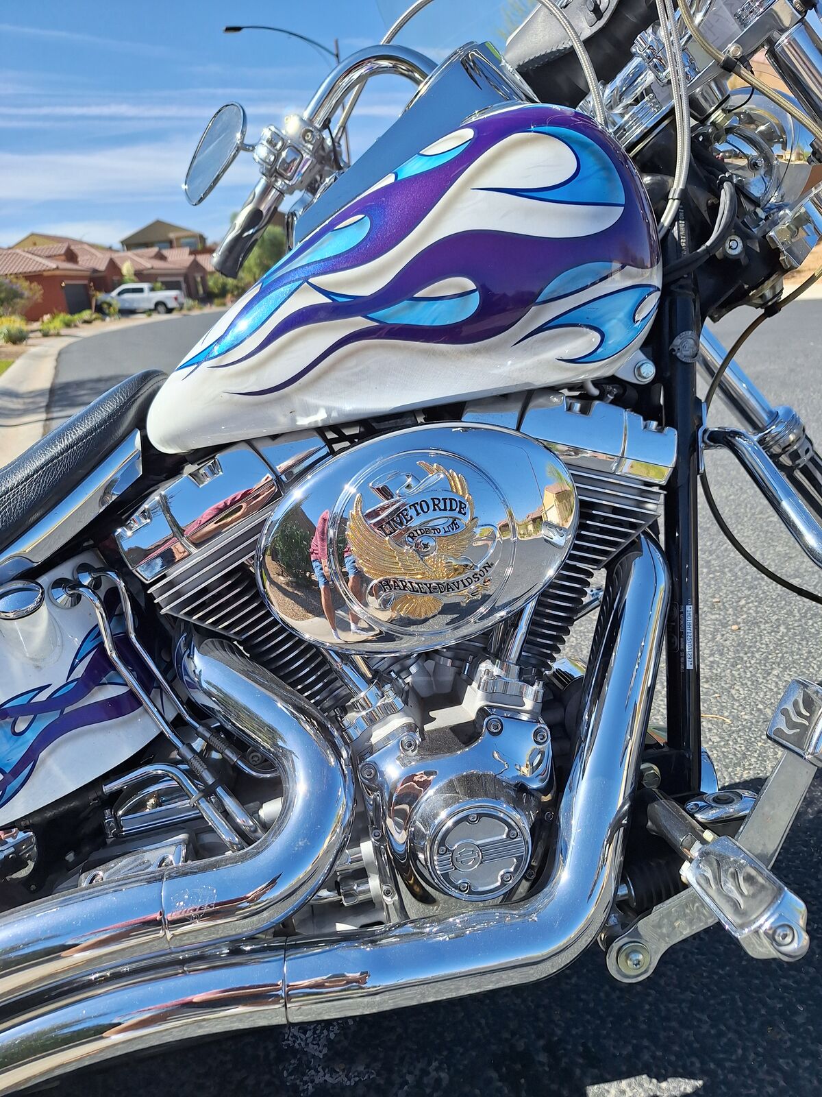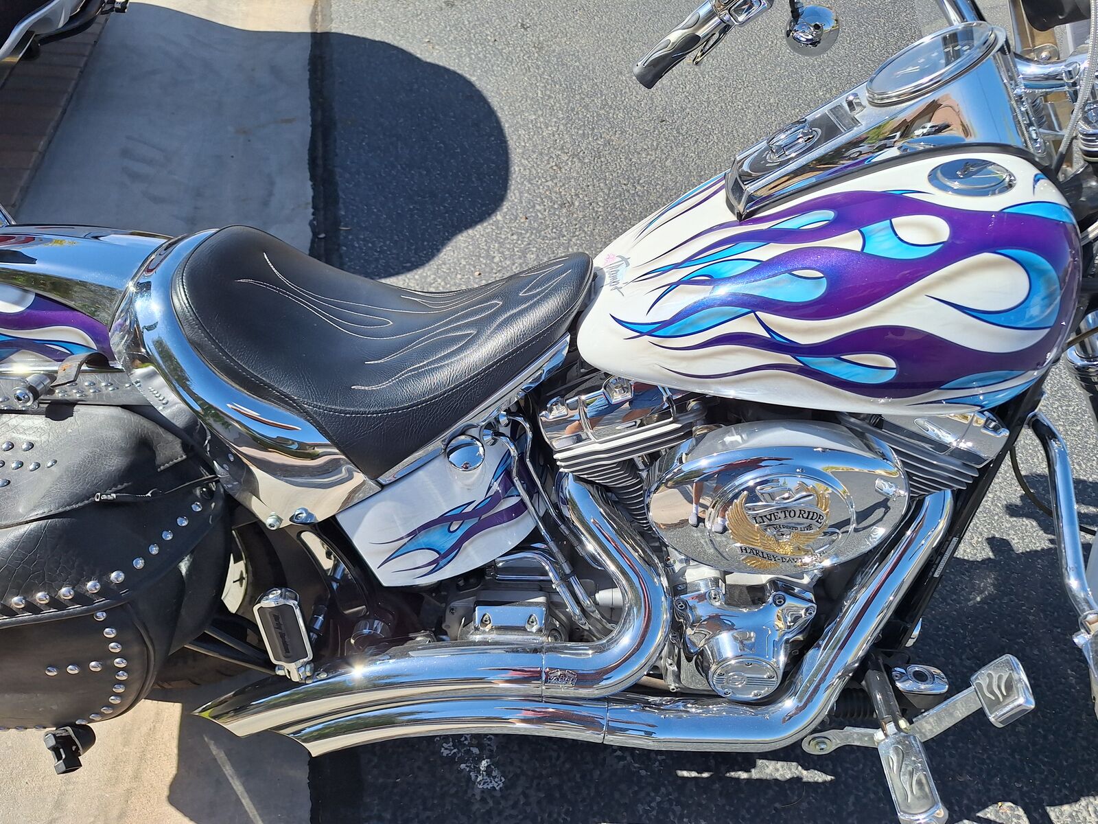 This"show bike" has always been air conditioned garage kept. It is in GREAT shape and ready to ride!! I have all the service records and the original invoice that shows almost 10K of extra chrome features . The paint job has been signed by Tom Horton a famous St George Utah artist on the rear fender. The bike is extremely LOUD with the custom pipes. I have leathers an extra seat , and extra parts included in the price as I no longer ride. I will consider the best offer. 28,500 miles