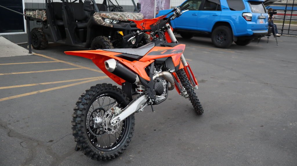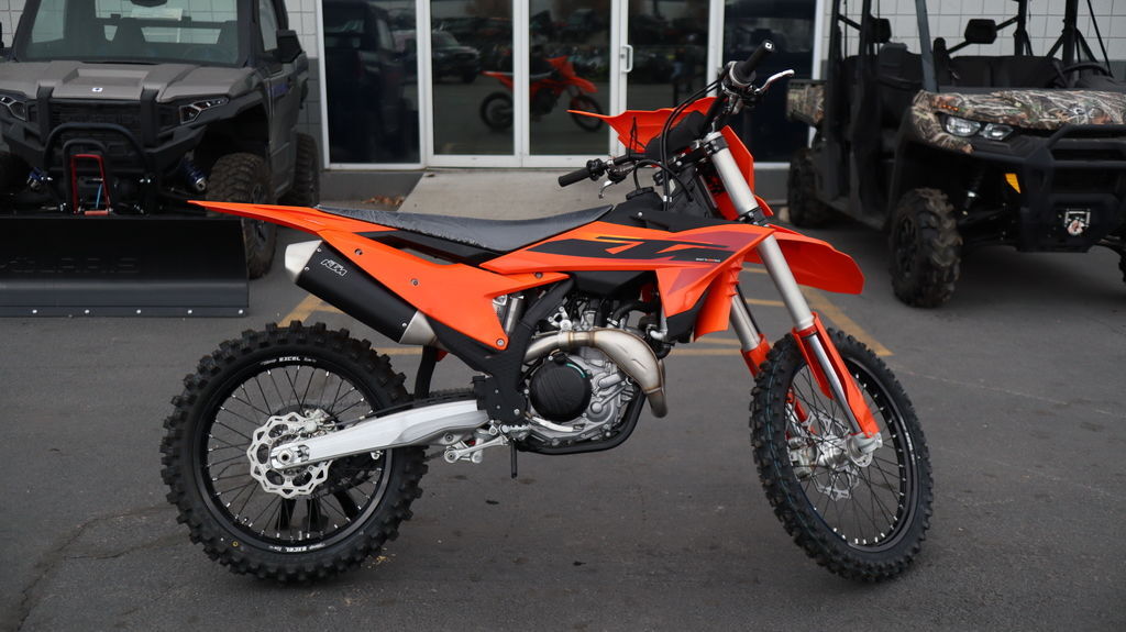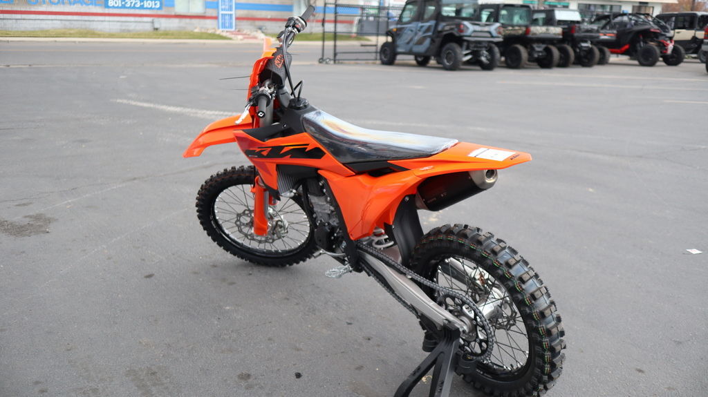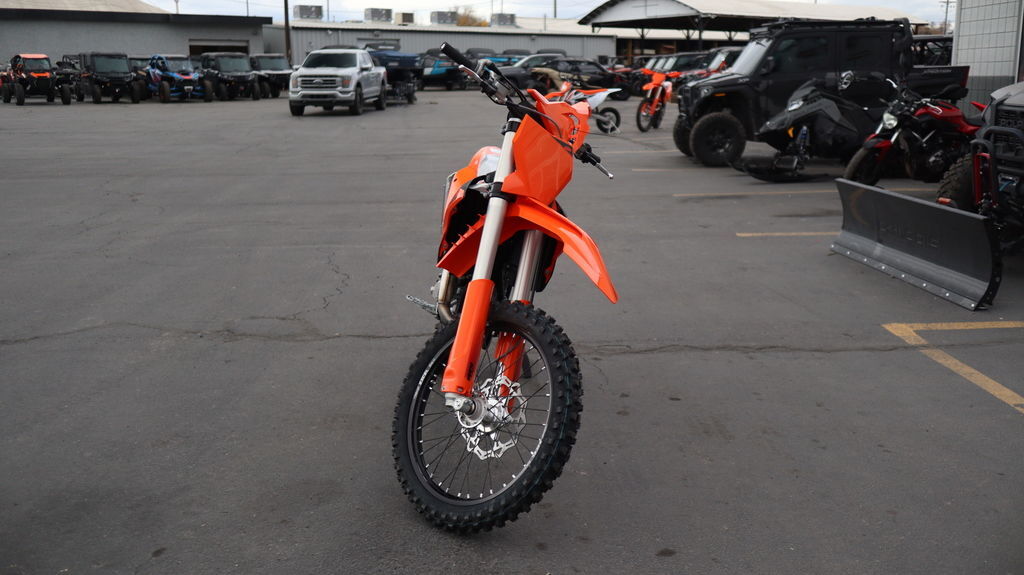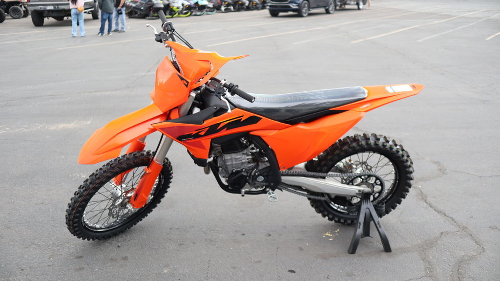 2025 KTM 450 SX-F When you see the 2025 KTM 450 SX-F roll off the trailer, you know it means business. With 5 AMA 450 Supercross titles in the last 7 seasons, the 2025 KTM 450 SX-F rolls up to the starting gate already armed with the learnings of past championships - only this time, it's freshly loaded with an all-new arsenal of weaponry. Features may include: BEFORE THE GATE CLICK INTO ACTION Easy Suspension Adjustment As always, the suspension boasts an easy tool-free setup at both ends, ensuring you chase down the podium in total control. On the rear, a hand-adjustable dual compression control allows riders to adjust high- and low-speed settings in a matter of seconds. The forks on the front end are also easily adjusted thanks to hand-adjustable clickers on the bottom of the fork shoe and top cap. BREATHE EASY Air filter box Designed to provide maximum airflow, the air filter box is designed with precisely positioned inlet ducts aimed at preventing air deformation and maintaining filter protection. The Twin Air filter and air filter support design feature a simple fail-proof mounting system for safe and accurate filter installation, ensuring the air filter is easily accessed, without tools, by removing the left side panel, for easy track-side maintenance. A vented air filter box cover is also included for all SX and SX-F models in the by-pack. LESS FOCUS ON THE TOOL, MORE FOCUS ON THE TRACK Serviceability The 2025 KTM SX and SX-F range is engineered and designed to provide riders with easy-to-access service parts, as well as suspension adjustability. This allows faster track-side and off-season maintenance, as well as making motocross more accessible for novice riders without pit crews. START STRONG UNMATCHED PERFORMANCE More Usable Power When the war drums sound and the gate drops, you need to be the first to off the line in a bid to rule the roost. The 2025 KTM 450 SX-F boasts one of the most manic 4-stroke powerplants in the paddock, with its SOHC engine proving to be the perfect example of advanced engineering. With a peak power output, and an overall engine weight of only 26.8 kg, you'll leave the competition with more than a little mud on the face. DROP THE CLUTCH Launch Control & Quickshifter Launch control, ENGAGED! Designed for the holeshot, the 2025 KTM SX-F range comes standard with launch control and Quickshifter function, allowing for fast upshifts without using the clutch. Launch control is easily engaged by pressing the traction control and Quickshifter buttons simultaneously and works by limiting the amount of power to the rear wheel, improving traction, and preventing loss of control under hard acceleration. Meanwhile, the Quickshifter function means you can bang through from 2nd to 5th gear with your focus solely on the first corner. TOTAL TRACTION Selectable Maps + TC The map select switch on the 2025 KTM SX models features a simpler design, allowing for easier functionality in switching between 2 engine maps. Map 1 provides a more linear power curve. while map 2 punches all-out with aggressive throttle and explosive power. Luckily, Traction control is easy toggled to an on or off position from the same switch, ensuring maximum traction and a distinct advantage in wet or muddy conditions. CALM UNDER FIRE SLEEKER FOR YOU TO SCRUB CLEANER Absolute Control Get ready for a full-on berm assault. The 2025 KTM SX and SX-F machines have received major frame updates directly from Factory Racing efforts.