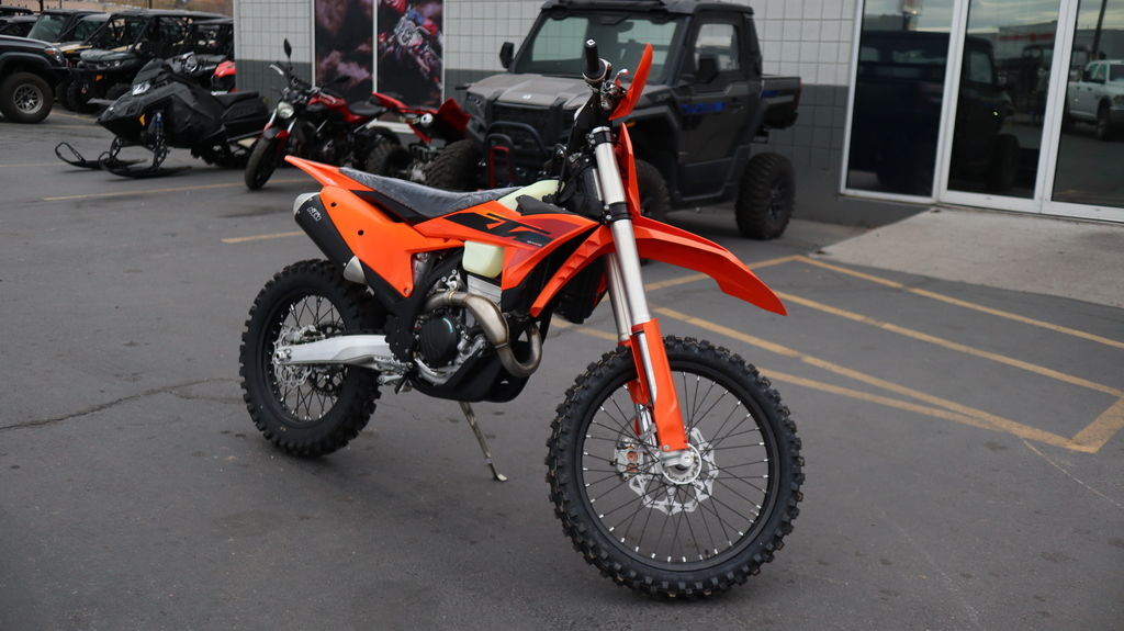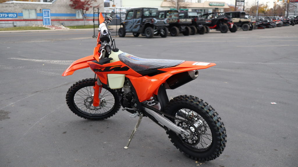 2025 KTM 350 XC-F What is there to say about the KTM 350 XC-F that hasn't already been said? Well, for starters, the 2025 KTM 350 XC-F takes everything great about previous generations and makes it even better. With a reworked frame, new airbox, new swingarm, improved suspension settings, and the same usable performance, the 2025 KTM 350 XC-F is ready to take up the challenge - and the lead. Features may include: BEFORE THE FLAG CLICK INTO ACTION Easy Suspension Adjustment The 2025 KTM XC and XC-F range took their already awesome suspension package and turned it up to 11. The WP XACT Closed Cartridge spring forks and WP XACT rear shock has been updated, with reworked settings and alterations to improve weight distribution and increase overall response. As always, the suspension boasts an easy tool-free setup at both ends, ensuring you chase down the podium in total control. On the rear, a hand-adjustable dual compression control allows riders to adjust high- and low-speed settings in a matter of seconds. The forks on the front end are also easily adjusted thanks to hand-adjustable clickers on the bottom of the fork shoe and top cap. BREATHE EASY Airbox Now a more robust one-piece construction, the airbox on the 2025 KTM XC range features a redesigned air inlet sleeve and snorkel, which prevents deformation and improves airflow. But don't fret, toolless filter access is retained, with an intuitive filter mounting system and protection against dirt intrusion. START STRONG UNMATCHED PERFORMANCE More Usable Power Perfectly filling the gap between the KTM 250 XC-F and the powerhouse KTM 450 XC-F, the lightweight KTM 350 XC-F powerplant rules the roost in a class of its own. Designed and tuned to provide the best performance and handling characteristics possible, the DOHC engine delivers endless mid-range and the top-end power together with the benefits of mass centralization and ideal anti-squat behavior. With 450-rivalling performance and an overall engine weight of only 60.6 lb, you'll leave the competition with more than a little mud on the face. DROP THE CLUTCH Launch Control & Quickshifter Launch control, ENGAGED! Designed for the holeshot, the 2025 KTM 350 XC-F comes standard with launch control and a Quickshifter function, allowing for fast upshifts without using the clutch. Launch control is easily engaged by pressing the traction control and Quickshifter buttons simultaneously and works by limiting the amount of power to the rear wheel, improving traction, and preventing loss of control under hard acceleration. Meanwhile, the Quickshifter function means you can bang through from 2nd to 6th gear with your focus solely on the first corner. TOTAL TRACTION Selectable Maps + TC The map select switch on the 2025 KTM 350 XC-F features a simpler design, allowing for easier functionality in switching between 2 engine maps. Map 1 provides a more linear power curve, while map 2 punches all-out with aggressive throttle and explosive power. Luckily, Traction control is easy toggled to an on or off position from the same switch, ensuring maximum traction and a distinct advantage in wet or muddy conditions. CALM UNDER FIRE CORNER ON RAILS Absolute Control No matter how gnarly the trail is, you'll stay in control thanks to a rider-focussed frame design that has not only been engineered for longitudinal rigidity, but also positions rotating mass as close as possible to the center of gravity. Thick frame walls also improve reliability, flex characteristics and offer unmatched rider feel.