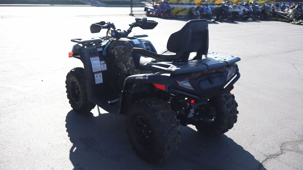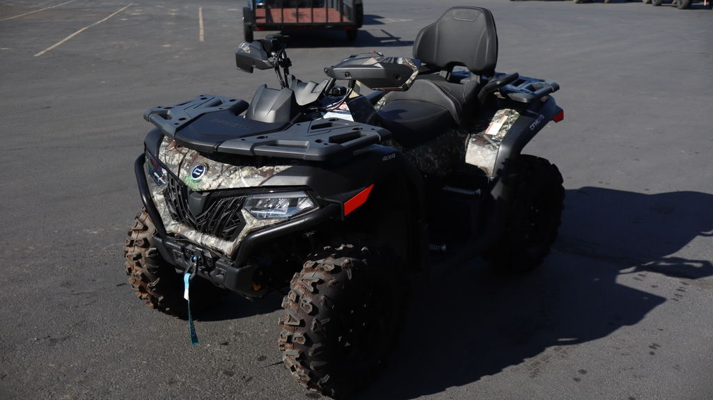 2025 CFMOTO CForce 600 Touring Camo You love to ride. The CFORCE 600 Touring makes it easy to share that love with a comfy passenger seat, liquid-cooled 580cc engine, effortless CVTech transmission, and electronic power steering. Paired with a 58.5" wheelbase, front and rear double A-arm independent suspension, and 10.6" of ground clearance, this might just be the ultimate two-up explorer. Features may include: 580cc Engine The CFORCE 600 Touring is powered by an all-new 580cc, four-valve, EFI, liquid-cooled engine, built on more than 2 decades of continuous innovation of liquid-cooled technology from CFMOTO. Powerful torque with 44 hp output is put to work with the CVTech transmission and centrifugal clutch. Electronic Power Steering An electronic control unit interprets steering input and provides appropriate feedback with respect to speed. At low speeds you get more assistance — less at higher speeds. RideVision™ LED Headlights Brighter and much more durable than halogen, LED lighting offers unmatched visibility and safety, especially in lowlight conditions. LED is less prone to damage from shock, vibration, and temperature changes. Expanded Seating The thick cushioned driver’s seat provides a comfortable ride, while a removable split rear seat also offers a plush ride for a passenger. The ergonomically formed seats optimize security and protection for rider and passenger, while ensuring both enjoy all-day comfort on their adventure.