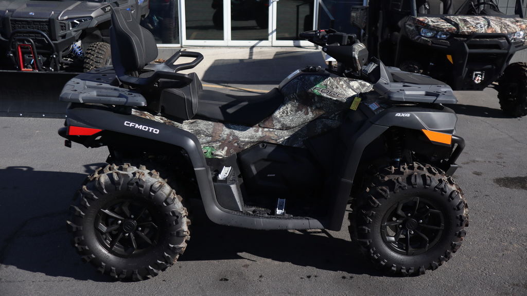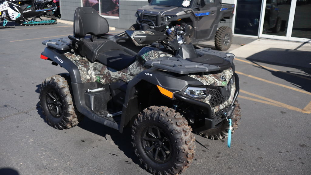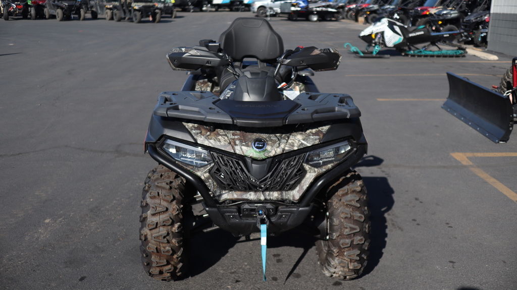 2025 CFMOTO CForce 600 Touring Camo You love to ride. The CFORCE 600 Touring makes it easy to share that love with a comfy passenger seat, liquid-cooled 580cc engine, effortless CVTech transmission, and electronic power steering. Paired with a 58.5" wheelbase, front and rear double A-arm independent suspension, and 10.6" of ground clearance, this might just be the ultimate two-up explorer. Features may include: 580cc Engine The CFORCE 600 Touring is powered by an all-new 580cc, four-valve, EFI, liquid-cooled engine, built on more than 2 decades of continuous innovation of liquid-cooled technology from CFMOTO. Powerful torque with 44 hp output is put to work with the CVTech transmission and centrifugal clutch. Electronic Power Steering An electronic control unit interprets steering input and provides appropriate feedback with respect to speed. At low speeds you get more assistance — less at higher speeds. RideVision™ LED Headlights Brighter and much more durable than halogen, LED lighting offers unmatched visibility and safety, especially in lowlight conditions. LED is less prone to damage from shock, vibration, and temperature changes. Expanded Seating The thick cushioned driver’s seat provides a comfortable ride, while a removable split rear seat also offers a plush ride for a passenger. The ergonomically formed seats optimize security and protection for rider and passenger, while ensuring both enjoy all-day comfort on their adventure.