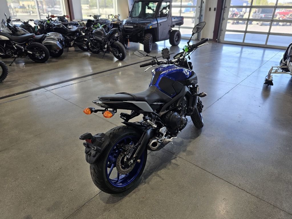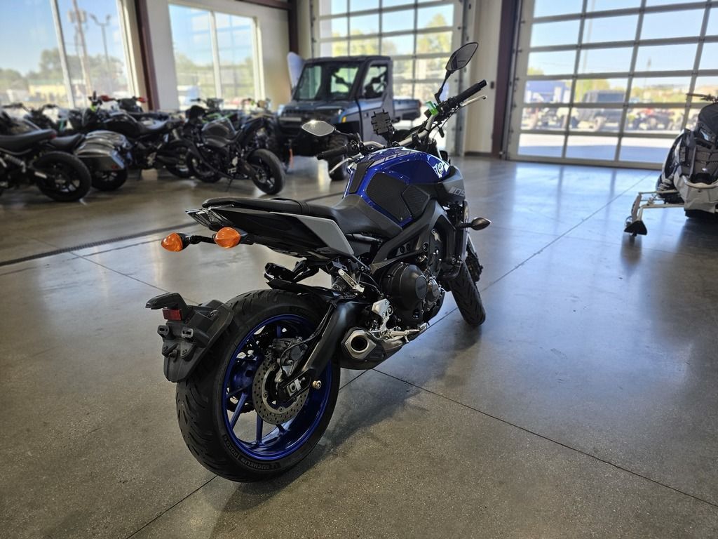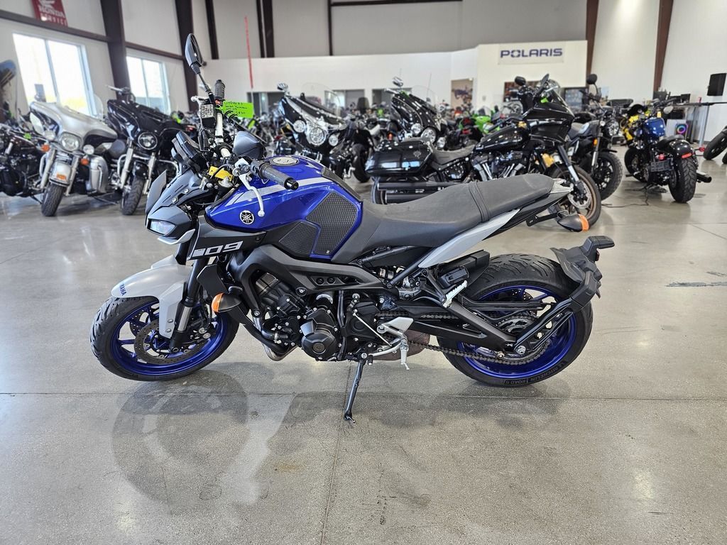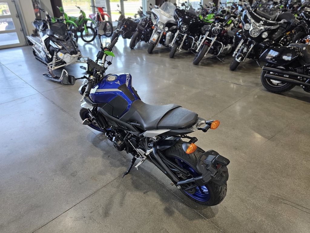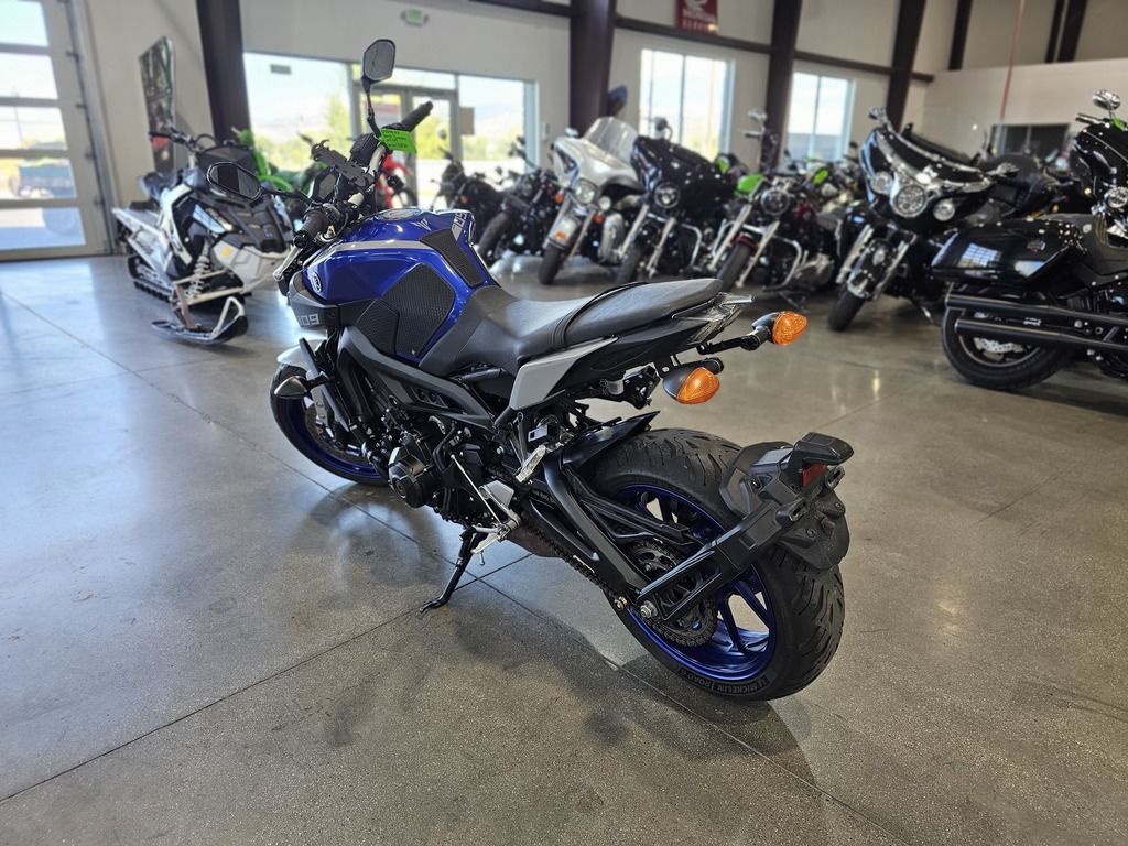 2020 Yamaha MT-09 EYES OF DARKNESS The industry benchmark in hyper naked agile handling, triple cylinder performance, and dark side inspired design. Features may include: The Class-Defining Naked Sportbike Packing aggressive style and impressive performance, Yamaha’s original Hypernaked blew open the sportbike segment. Now wearing the MT-09 badge and more refined than ever, it features a potent inline-triple motor, adjustable traction control, a fully-adjustable fork, ABS, and an aggressive look unlike anything else on the road. Powerful Inline-Triple The MT-09’s 847cc CP3® engine combines advanced electronic systems—including YCC-T®, Yamaha D-Mode and multi-mode traction control—with a crossplane concept crankshaft to deliver an exciting, torquey and quick-revving engine character built around rider-centric control. ENGINE Advanced 3-Cylinder Engine The MT-09 is powered by an 847cc liquid-cooled, inline 3-cylinder, DOHC engine with downdraft intake and ride-by-wire throttle control. With a 78.0mm x 59.1mm bore x stroke and 11.5:1 compression ratio, it produces an exciting, torquey and quick-revving engine character, perfectly splitting the best characteristics of both 2- and 4-cylinder motors in a compact, lightweight package. Crossplane Concept CP3 Design The MT-09’s “Crossplane Crankshaft Concept” engine provides linear torque development in response to the rider’s throttle input, for responsive engine thrust with a strong feeling of power in the low- to mid-rpm range. To boost refinement and provide a smoother ride, the CP3 engine uses a compact counterbalancer to cancel out vibration. CHASSIS/SUSPENSION Compact, Sporty Chassis The MT-09 is built around a strong controlled-fill cast aluminum frame. The wheelbase, seat height, fuel tank width, rake and other dimensions are all set to work with the qualities of the compact 3-cylinder engine to achieve a sporty, light and neutral handling character, an upright riding position and a narrow feeling chassis at the seat/tank junction. Fully Adjustable Inverted Fork The 41mm inverted fork is fully adjustable for compression damping, rebound damping and spring preload. Not only does this allow riders greater flexibility in tuning their MT-09, the fork separates compression and rebound damping into separate fork legs, making it easier to fine-tune for the perfect setup across all 5.4 inches of fork travel. ADDITIONAL Comfortable, Upright Ergonomics Enjoy every ride thanks to upright ergonomics that balance front-end feedback with do-it-all practicality. The tapered aluminum handlebar, ideal placement of the seat and footpegs, and ultra-narrow frame and fuel tank create an excellent sense of feel between rider and machine. The long, flat seat improves rider comfort, and is roomier for a passenger, too. LED Lighting The MT-09 features LED headlights for brilliant illumination. The quad headlight unit produces a crisp spread of light for confidence in low-light conditions, and is matched to a 3D taillight design for head-turning style. ELECTRONICS Advanced Yamaha Chip Controlled Throttle The ride-by-wire Yamaha Chip Controlled Throttle (YCC-T®) system senses the slightest throttle input by the rider and instantaneously calculates the ideal throttle valve opening, and then actuates the throttle valves to actively control intake volume. This technology contributes to the rider’s feeling of torque and controllability from the 3-cylinder engine.