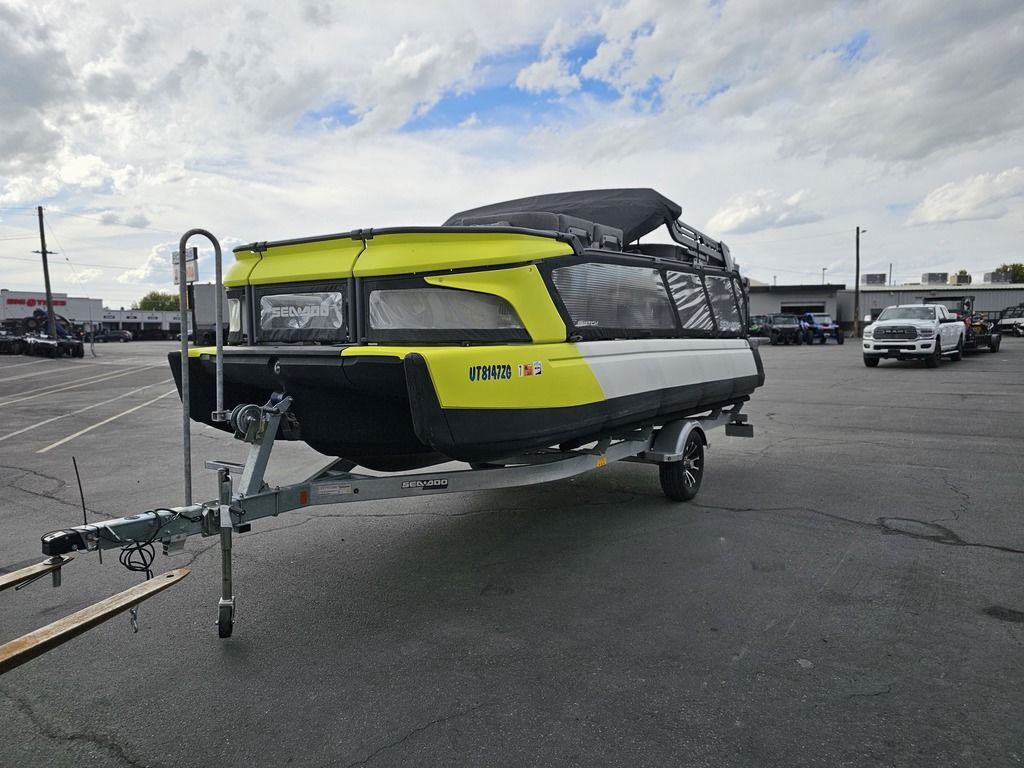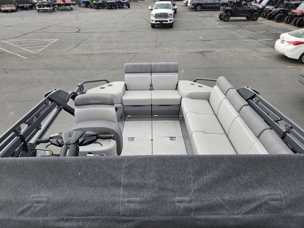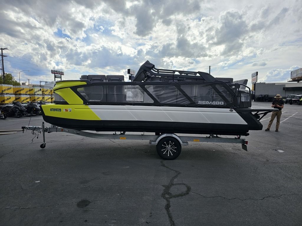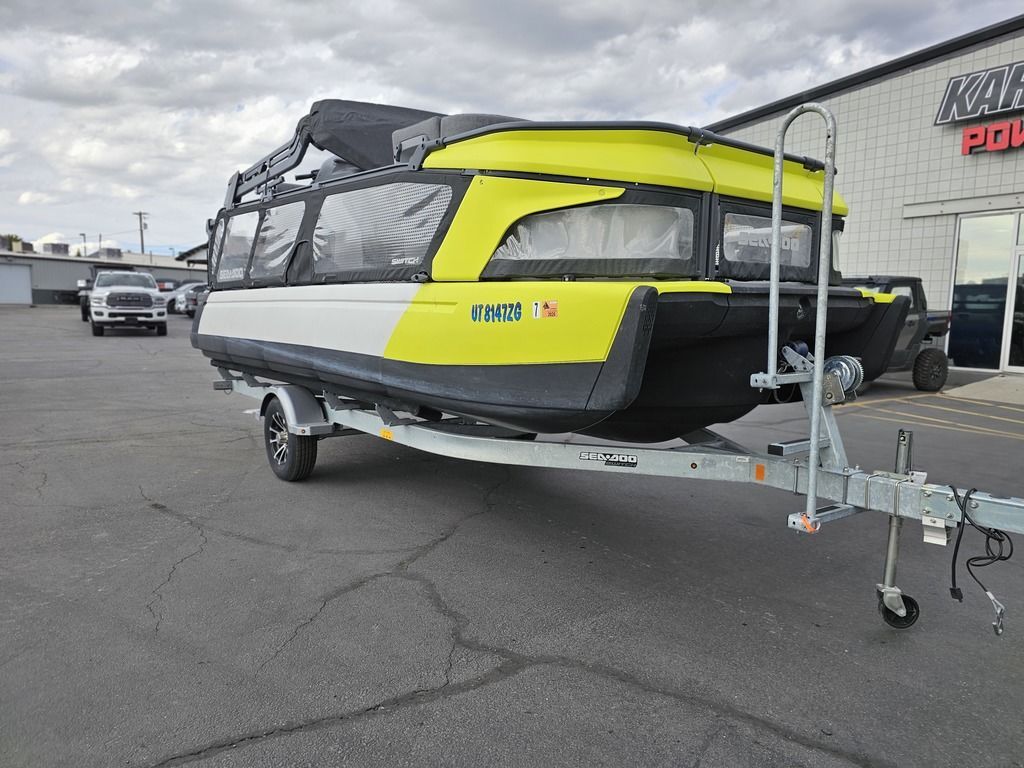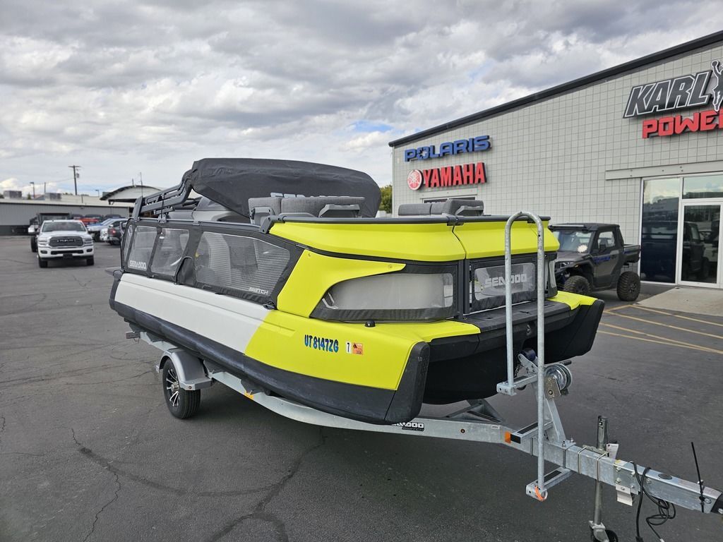 2024 Sea-Doo Switch® Cruise 21 - 170 hp Galvanized All-Out Comfort Lounge, relax, soak - however you take in the Sea-Doo Life, the Switch Cruise is outfitted to help your family do it with unmatched comfort, convenience and style on the water. For those wanting space to sprawl or added seating capacity, the Switch Cruise brings style and convenience to larger 21-foot layout with enough room for nine. There's also added storage capacity to accommodate larger crowds and a larger taste for adventure. Features may include: Nothing Quite Like It Unmatched fun and maneuverability The perfect platform for adventures with family and friends, there’s nothing on the water quite like the Switch Cruise. Intuitive handlebar steering with Intelligent Brake and Reverse (iBR) stops the boat sooner and simplifies docking and handling. Fully Customized Fit Personalized family fun Switch modular deck is designed to be redesigned. As your adventures and needs change, the innovative tile system lets you transform the onboard layout in seconds without tools for unparalleled adaptability. Feel the ride Full of excitement and confidence The Switch Cruise Tri-hull design creates a whole new feeling on a pontoon. The outer pontoons are set slightly higher in the water, adding confident stability and nimble performance. Rotax 1630 ACE™ Engine Proven power of fun Every Switch Cruise comes with proven, reliable power thanks to a Rotax 1630 ACE engine. The jet propulsion system offers an outsized fun factor with a level of maneuverability never seen on a pontoon boat. Stay Cool Shade when you need it When the ride calls for a cool down this sturdy Bimini top deploys in seconds. The aluminum frame and high-grade marine canvas offer essential protection from sun and the elements. Bonus Room Full Swim Platform with LinQ Attachment Points A full swim platform and retractable boarding ladder make a functional area for swimming and watersports. LinQ attachment points make accessorization secure, stylish and simple. Make Sound Waves Waterproof Bluetooth® Audio No day is complete without tunes. Get in the groove on the water with a factory-installed 100-watt, fully waterproof Bluetooth audio system and ride to your own beat.