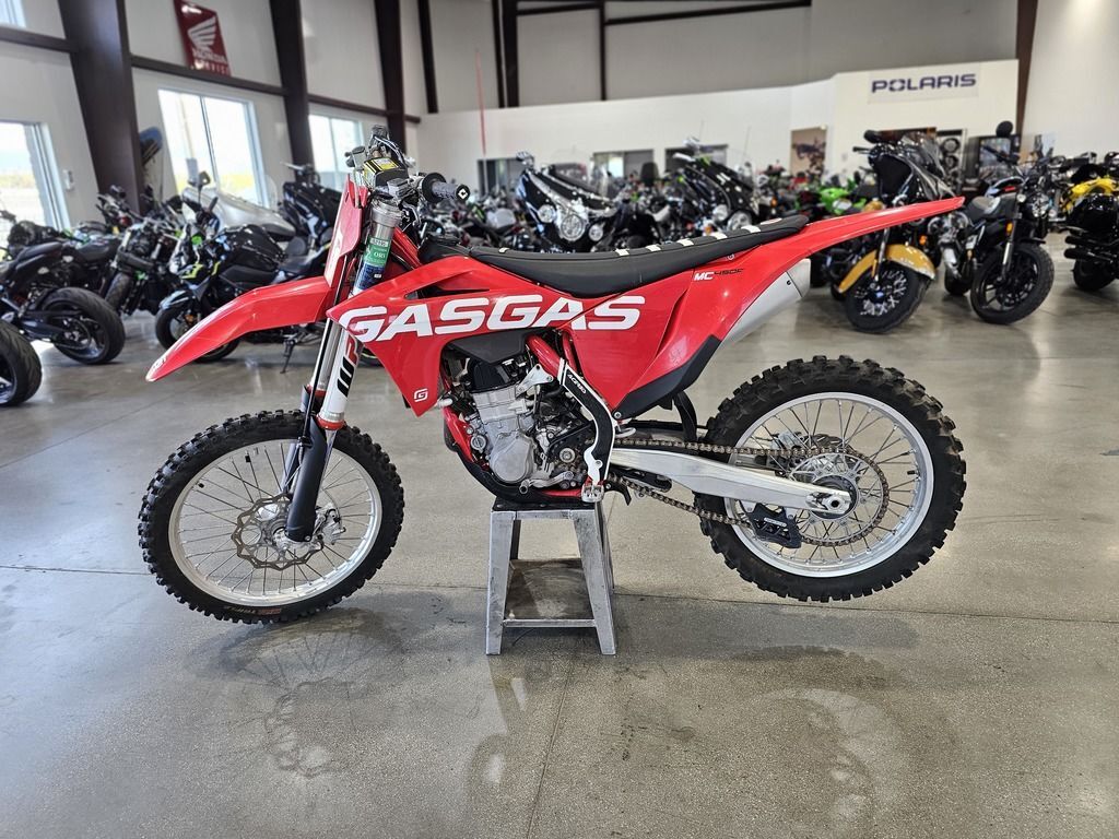 Used 2022 GASGAS MC 450F Dirt Bike For Sale In Salt Lake City, UT This Pre-Owned 2022 GASGAS MC 450F Dirt Bike is for sale at Karl Malone Powersports SLC conveniently located in Salt Lake City, Utah. Our knowledgeable team is eager to assist you, so don’t hesitate to contact us today to schedule an appointment. If this isn't the exact GASGAS Dirt Bike you're looking for don't hesitate to go back and revise your search. We're sure to have the perfect Dirt Bike for you in our showroom in Utah. We invite you to visit us at Utah’s premier GASGAS dealer for new and pre-owned Dirt Bikes for sale. Let us help you find the ideal Dirt Bike to take home today! Karl Malone Powersports SLC Address: 1379 W 3300 S, Salt Lake City, UT 84119 Phone: (801) 972-8725 2022 GASGAS MC 450F Get ready for awesome! Packed with innovative technology and pumping out seriously impressive performance, the MC 450F sure knows the meaning of fast. But with its precise and easy handling, super compact engine and class-leading electronic wizardry it's a big bike that's easy to ride and great for banging bars. Features may include: BODYWORK Red with a splash of white. That's the way we like it! The bodywork fitted to all GASGAS motocross bikes not only reflects our vibrant, Spanish personality but also ensures complete harmony between rider and bike. Considered ergonomics allow unrestricted movement while our flat, high-grip seat profile delivers comfort and control in all conditions. AIRBOX Less time working on bikes means more time riding bikes, which is exactly why you'll love the straightforward, no tools needed filter mounting system on all GASGAS motocross bikes. Allowing quick and easy filter changes, the airbox is designed with precisely positioned inlet ducts that ensure maximum airflow and protection of the Twin Air filter. FRAME The technology in our frames ensures riders enjoy playful handling and an energetic feeling on any motocross tracks. Underneath the red powder coating there's a lightweight chromium molybdenum steel, hydro-formed, laser-cut and robot-welded chassis that's built to perform. Designed to be rigid where it needs to be rigid and to flex where flex is needed, it provides exceptional rider feedback, energy absorption and straight-line stability. SUBFRAME With a short and compact profile all GASGAS motocross subframes are made from lightweight aluminum. The profile helps centralize mass while also keeping weight down. MOTOR Big power and monstrous amounts of torque from a compact SOHC motor that weighs just 27kg, including the electric starter! The MC 450F rips but thanks to centralization being key to the motor's design, the 62 hp power unit is positioned more centrally within the frame, ensuring a positive effect on the bike's overall handling. CYLINDER HEAD The MC 450F cylinder head is compact, lightweight and benefits from a short profile that locates the single camshaft as