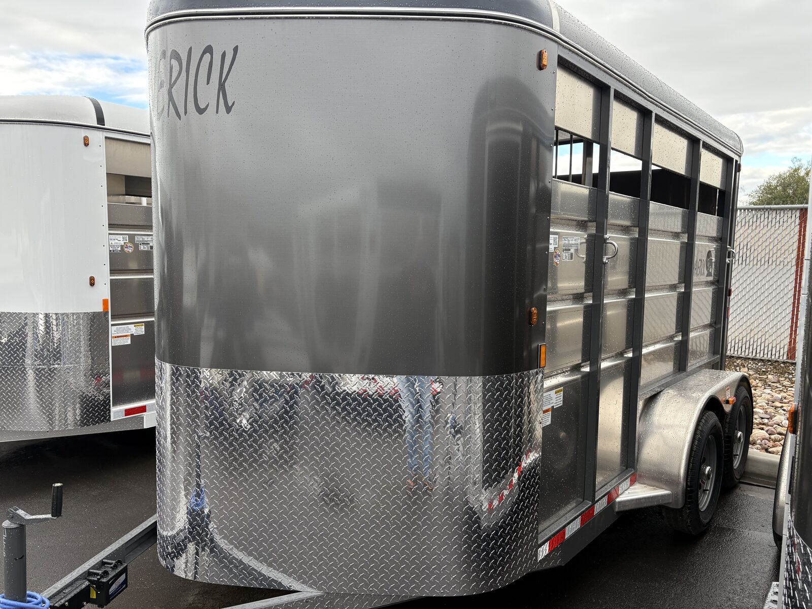 The trailer is a standard 2 horse slant load with a front tach and swing out saddle rack, within a matter of minutes with minor effort you can easily convert this to a 13' open stock trailer. Haul your horses, live stock, atv's, utv's or even just a load to the dump, this trailer can do it all! And its built to hold horses / live stock so its much stronger than your typical trailer.