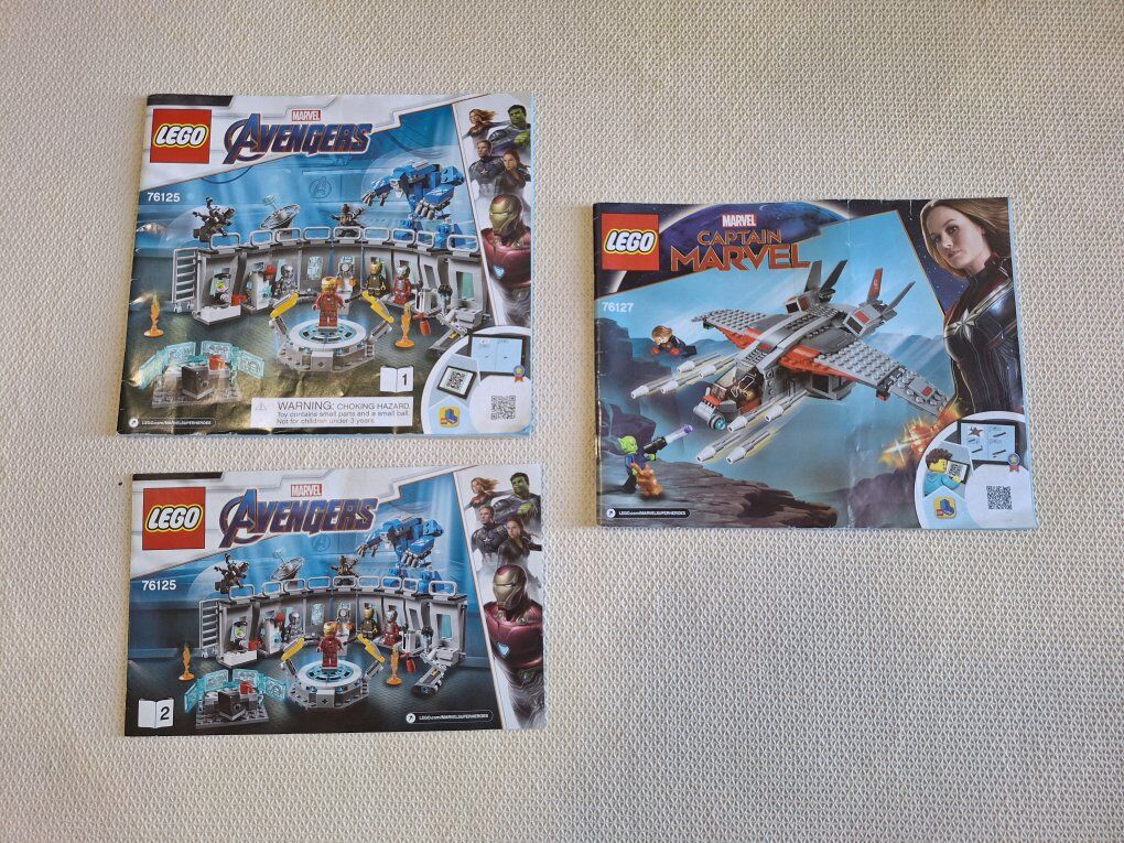 Two lego sets 76125 Avengers and 76127 Captain Marvel 100% complete with manual and The Lego Ideas book, no minifigures or box. Smoke and pet free home. Venmo or cash only. (801) 678-0309