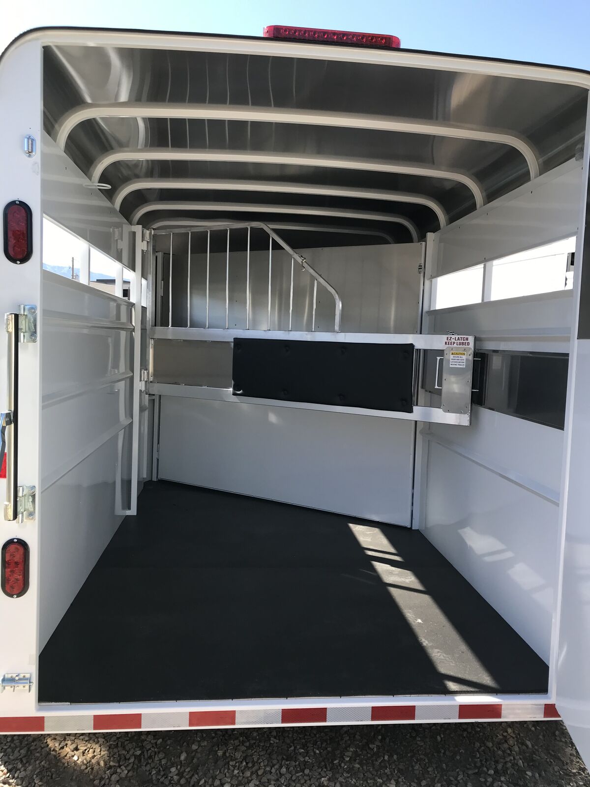 The trailer is a standard 2 horse slant load with a front tach and swing out saddle rack, within a matter of minutes with minor effort you can easily convert this to a 13' open stock trailer. Haul your horses, live stock, atv's, utv's or even just a load to the dump, this trailer can do it all! And its built to hold horses / live stock so its much stronger than your typical trailer.