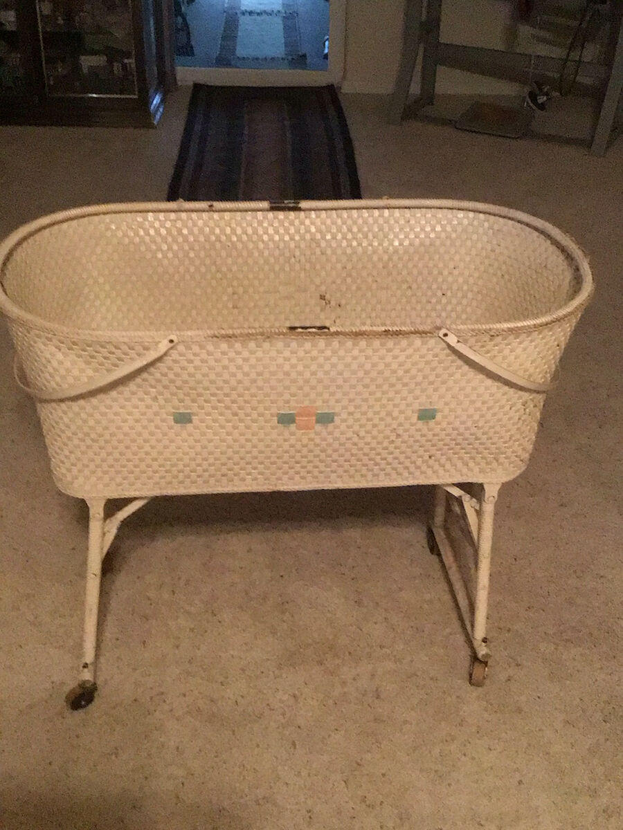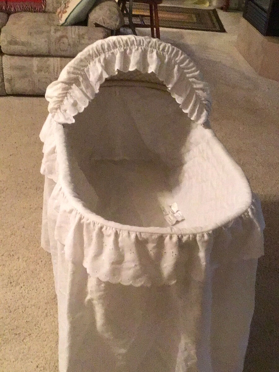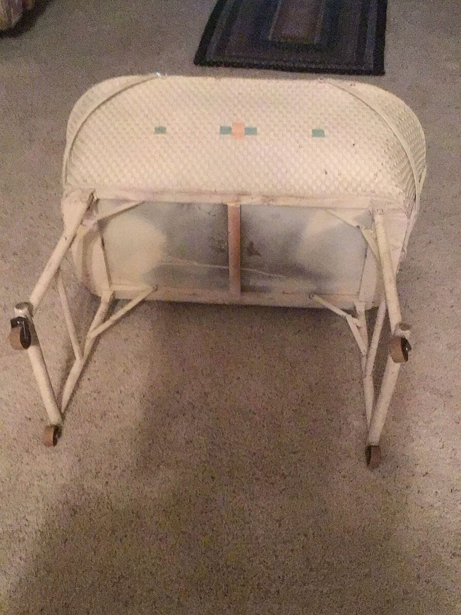 VenmoVintage Bassinettin great used condition, includes hood and cover and lined eyelet dressing. Folds down for easy storage. Also has wheels for easy moving. $75 firm. Need more pictures or have any questions Please ask. Located in Honeyville. Cash OR Venmo to hold.