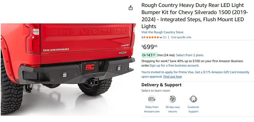 ApplePayRough Country Heavy Duty Rear LED Light Bumper Kit for Chevy Silverado 1500 (2019-2024) - Integrated Steps, Flush Mount LED Lights