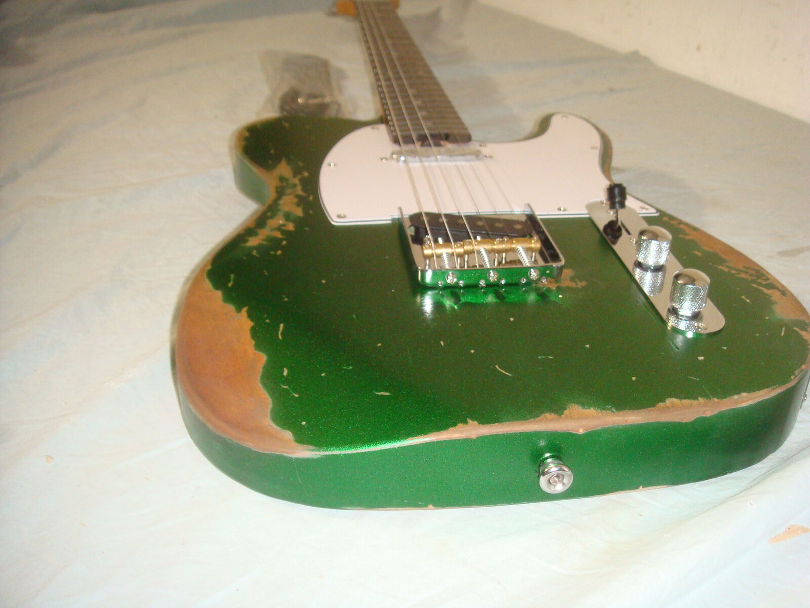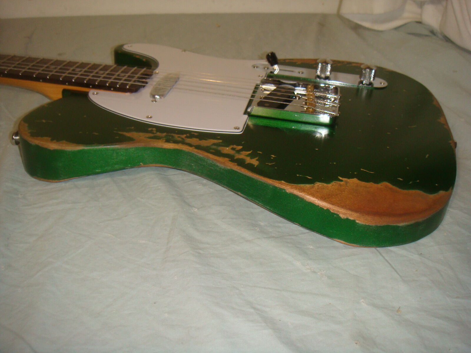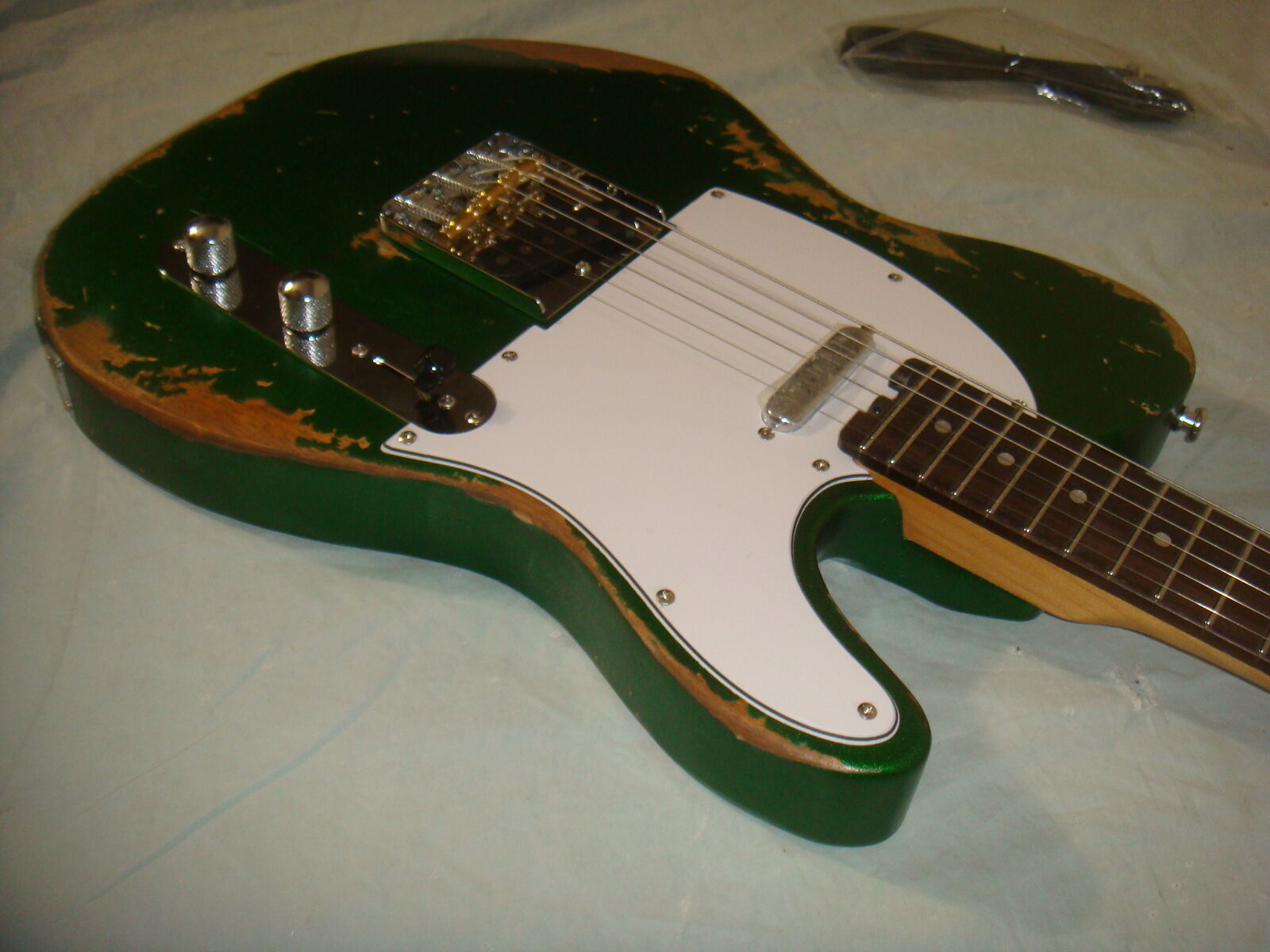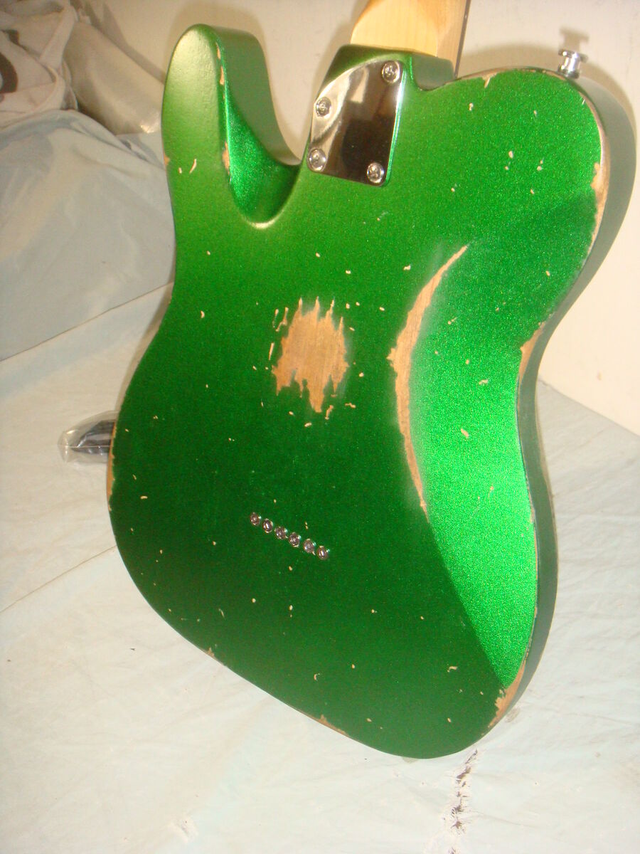 KGD RELIC T GREEN METALLIC TELECASTER ELECTRIC GUITAR W AGED/VINTAGE FINISH. This is a brand new guitar that was only opened for the photos. This is a super cool pre-distressed/aged guitar made to look like a Road Worn Tele, who's prices are WAY more money! It comes with everything shown. This is your chance to save big-time so don't miss out!!