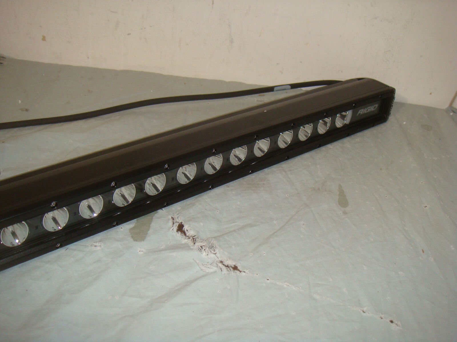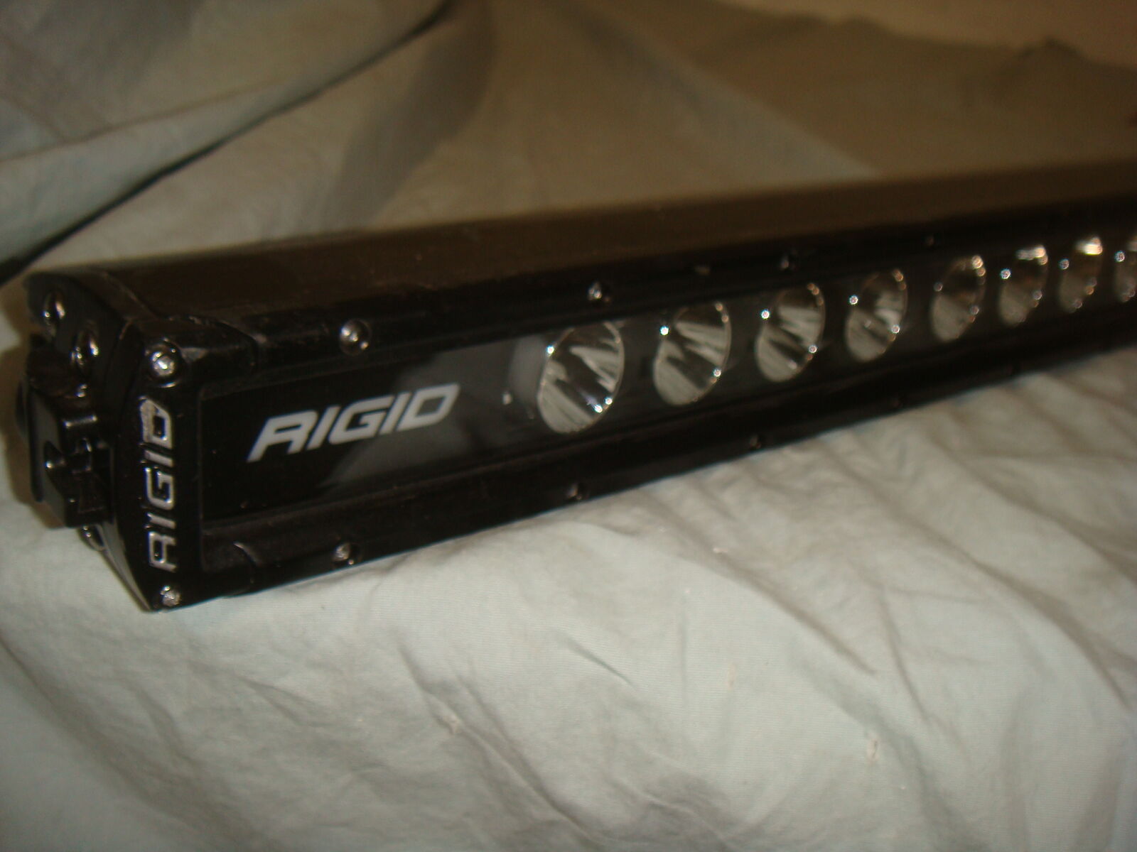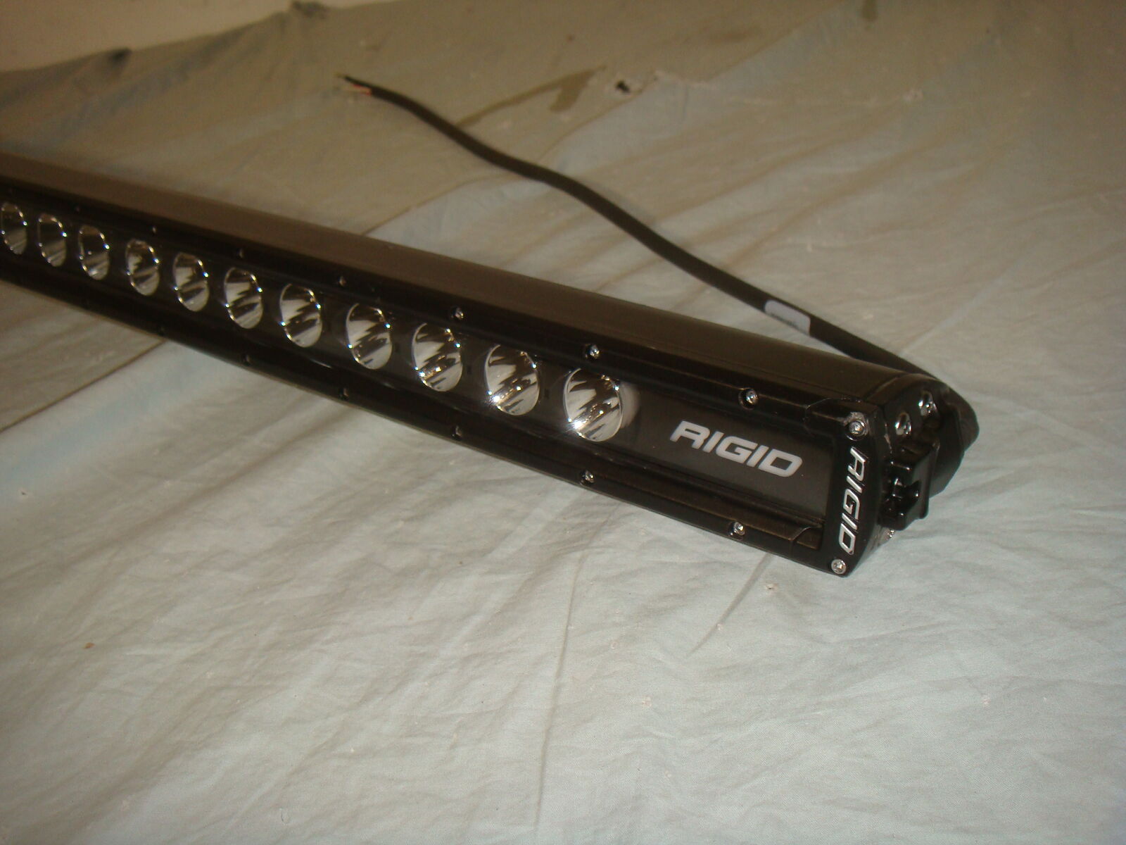 RIGID 50 INCH RADIANCE+ SR-SERIES RGBW VEHICLE LIGHT BAR. This is a lost freight item that we received as you see it in the photos. It is the light bar only without mounting hardware or any accessories. It doesn't appear to ever have been used, however there are some surface marks, a few minor dings, and there's one spot on the left rear that has a bit of denting/bending in one of the heat-sinks. We'll do our best to show everything in the photos. Otherwise it's in great overall condition. It powers up and works great! It comes with everything shown. These are normally $1245. This is your chance to save big-time so don't miss out!!