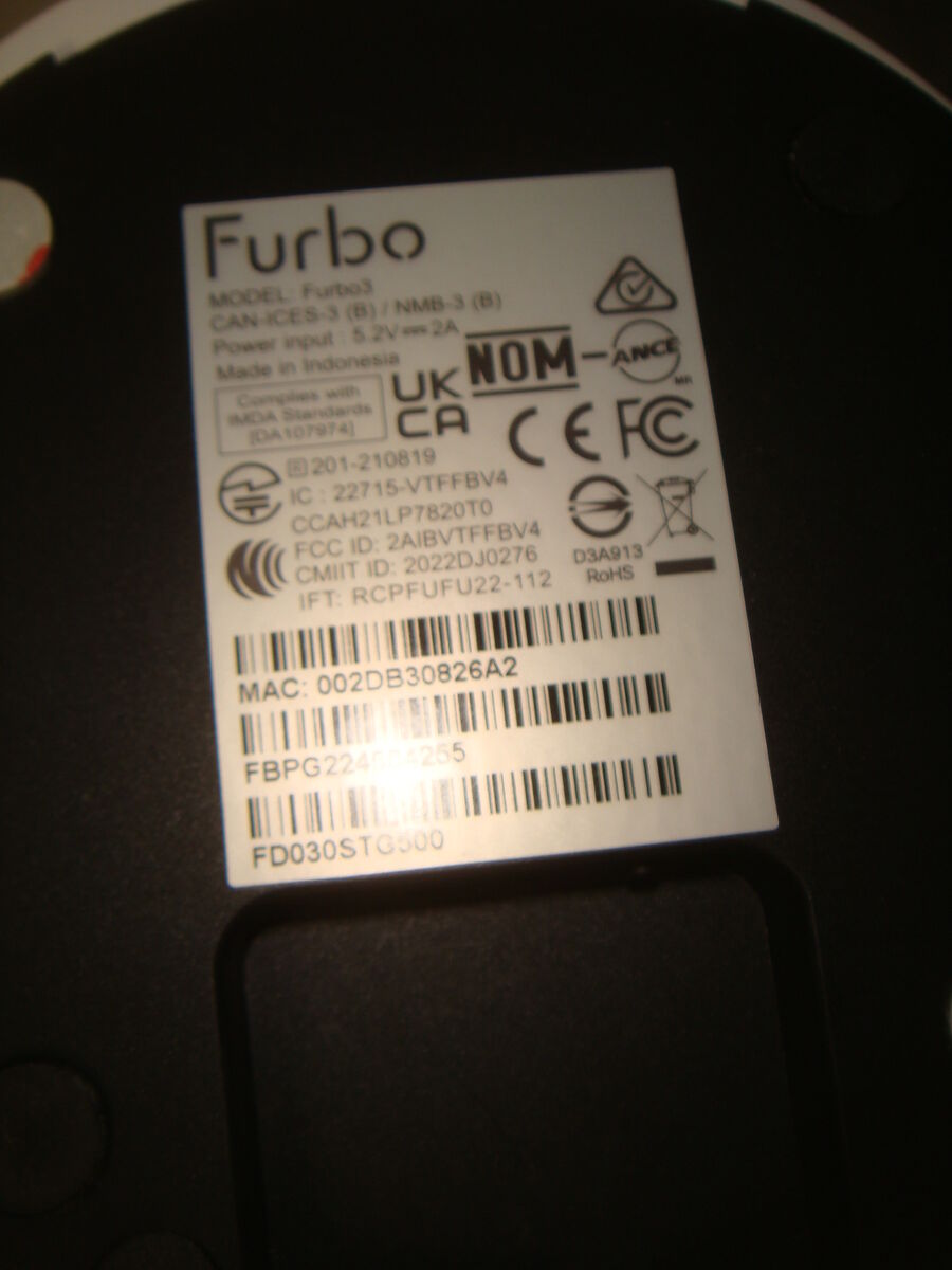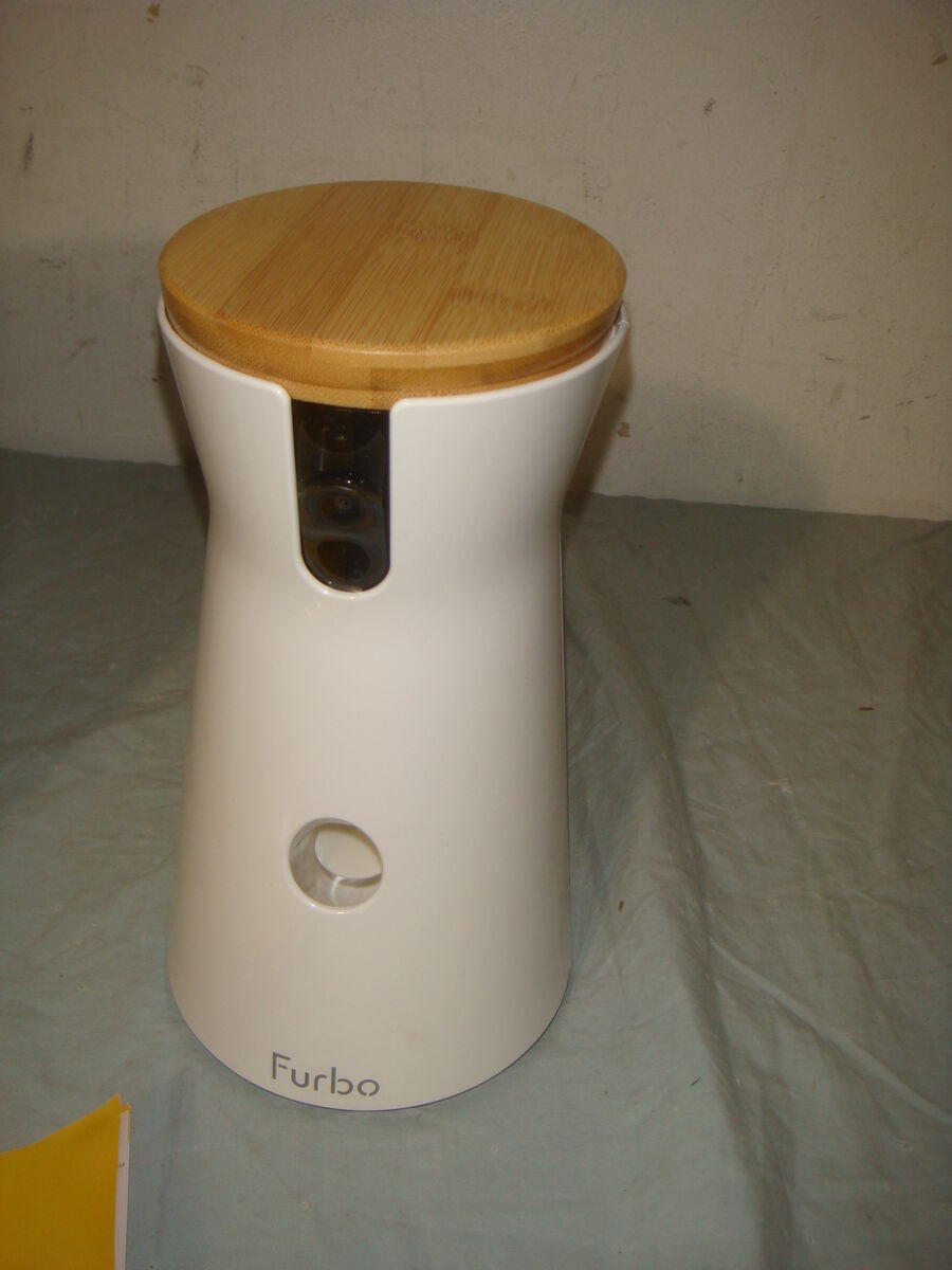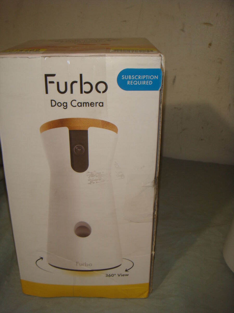 FURBO FURBO3 360° DOG TRACKING CAMERA WITH TREAT TOSS. This is a new, open box item that was never used. It is missing a USB-C cable to power it, but it's a common cable that most have already, and it does come with the unit, instructions, and the wall adapter. It is in new condition. It comes with everything shown. This is your chance to save big-time so don't miss out!!