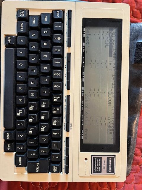 The TRS-80 Model 100 is a notebook-sized portable computer introduced in April 1983. It was the first commercially successful notebook computer, as well as one of the first notebook computers ever released.[1] It features a keyboard and liquid-crystal display, in a battery-powered package roughly the size and shape of a notepad or large book.