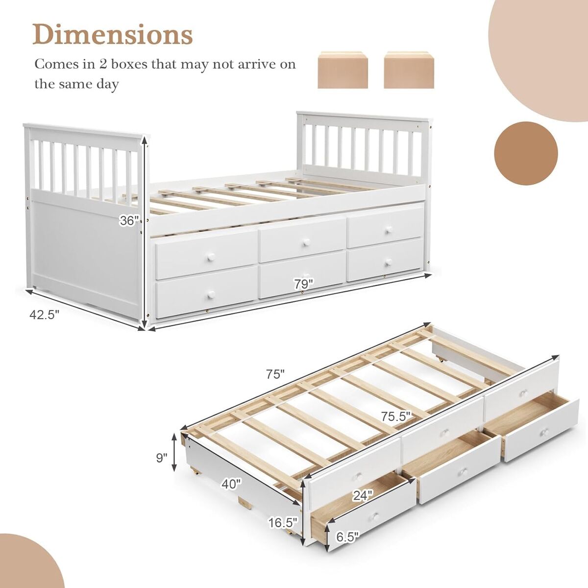 Twin Size trundle Bed for Kids/Teens. Three Storage Drawers, and Trundle (does not include trundle mattress). No Box Spring Required.