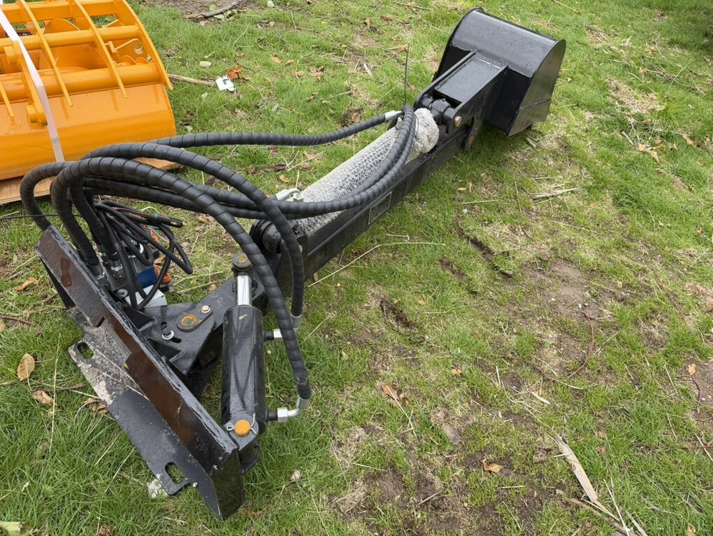 ZelleBrand new never used. Skid Steer Backhoe Digger (side swing) Has hydraulics hoses. Arm length: 43 Side swing angle: +30°