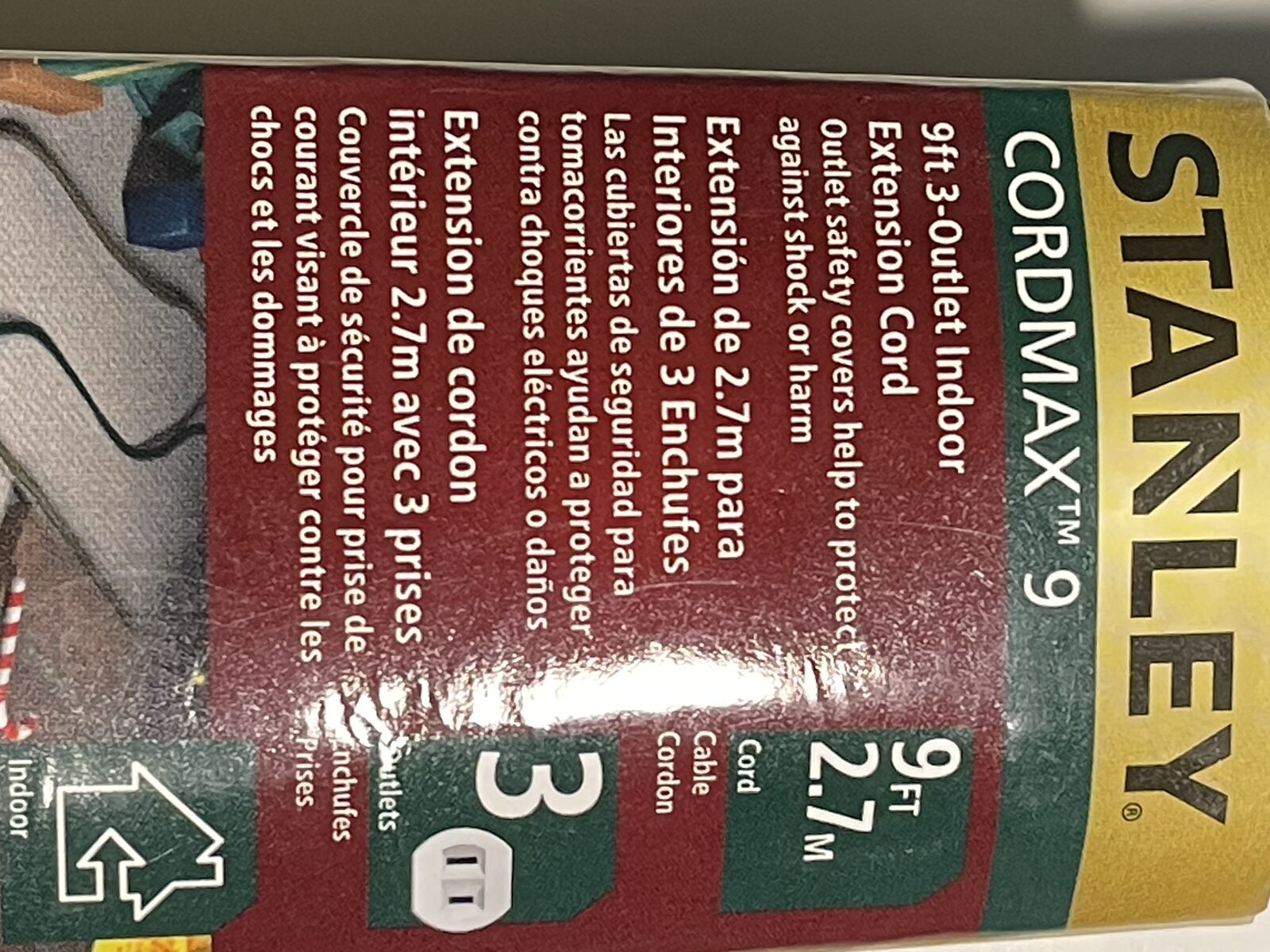 9.foot length, 16 gauge, three prong, 3-outlets, indoor preferred, retails for $15, I have several and will discount with multiple sales, ideal when needing less length.