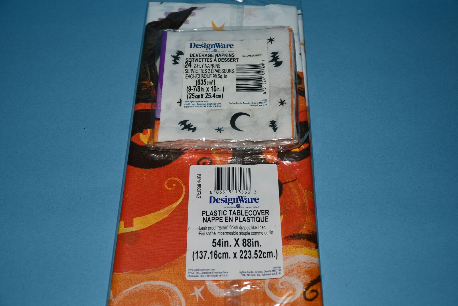 This Set of a HALLOWEEN TABLECLOTH (54" x 88"), NAPKINS (24) & TREAT BAGS (6) are from a smoke free home. ALL are NEW and UNOPENED. Our home is smoke free. Questions??? Please ask. We are located in Plain City. Cash only please.