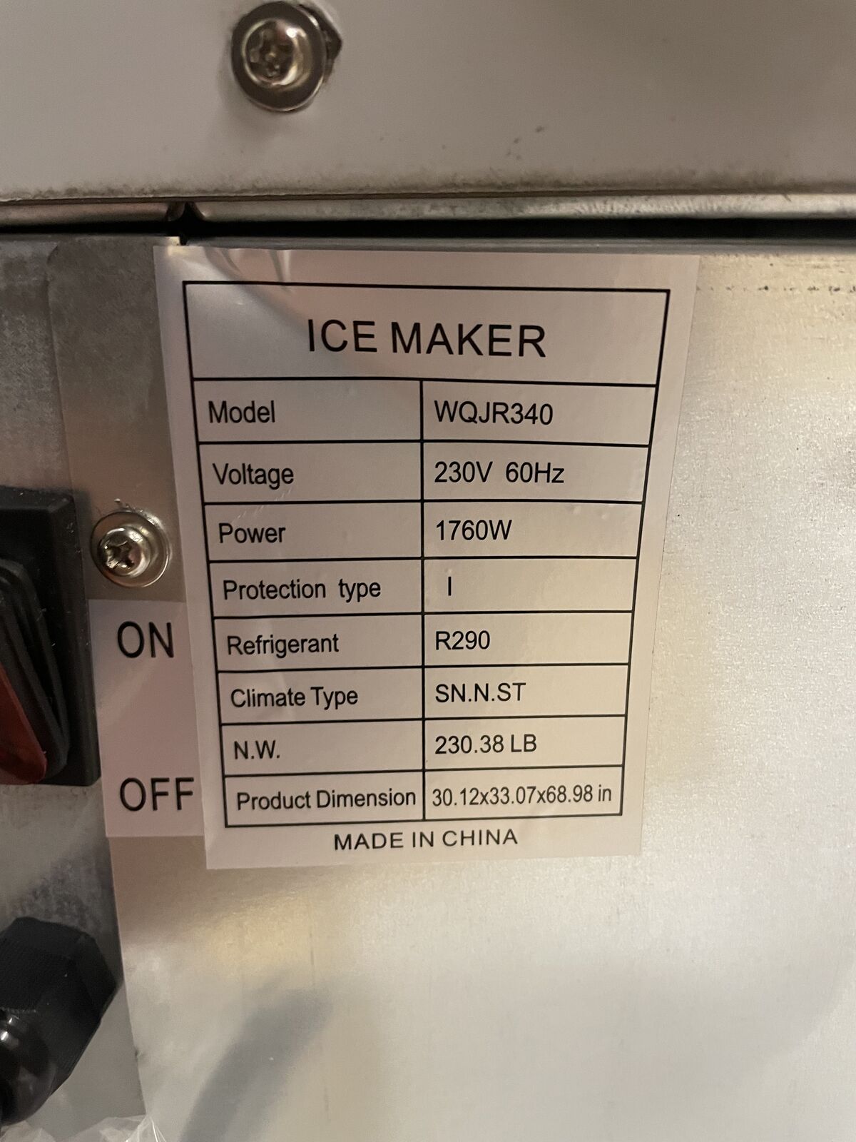 VenmoThis is a new high capacity ice machine. 1760W should make 800lbs of ice per day. This is just the ice maker, it requires a refrigerated ice storage bin for use. one of the panels on the back got dented, but it doesn't appear that it has affected the internal components. I haven't tested the machine, but have no reason to believe it doesn't work. I am willing to hook it up to power and water and demonstrate for serious buyers. Located in Layton.
