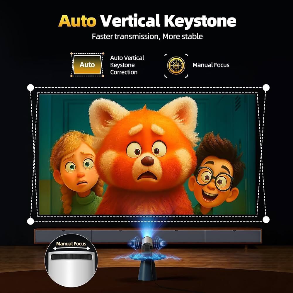 ZelleBrand new, Mini Projector with WiFi and Bluetooth, 4K Supported Portable Movie Projector with 5W Soundbase Speaker, 270° Rotation Automatic Vertical Keystone Correction, 300 ANSI Lumens Smart Proyector