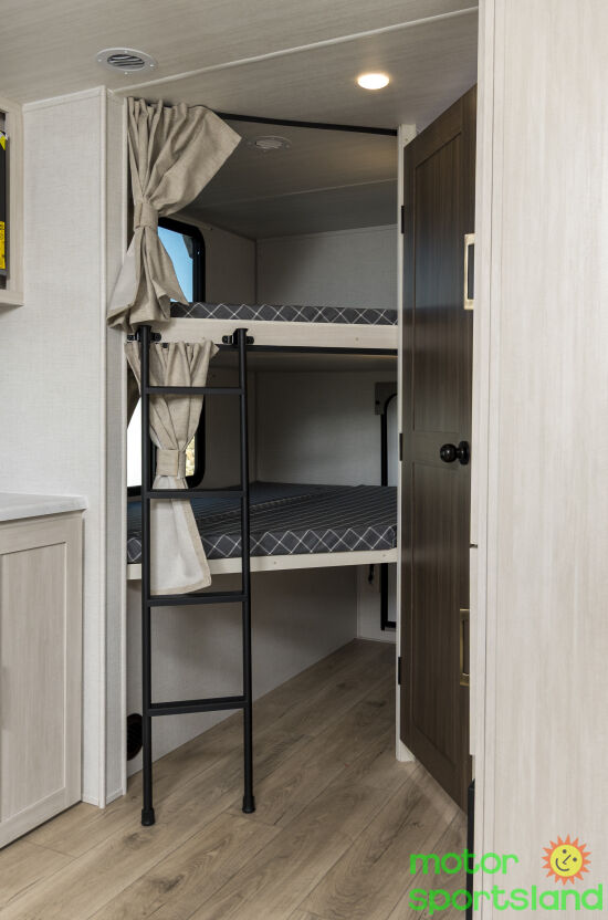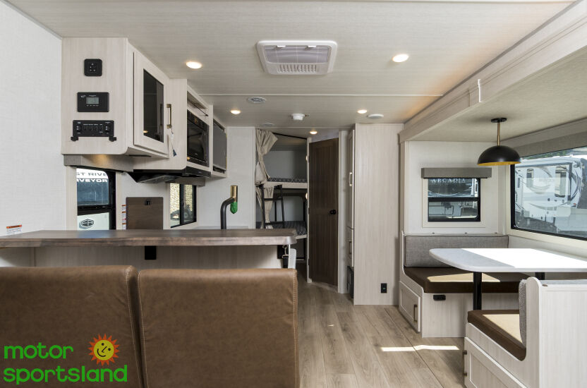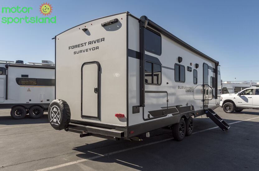 Family-Friendly Layout: With spacious bunk beds and a private master bedroom, this Travel Trailer comfortably sleeps up to 8, ensuring everyone has their own cozy spot. Luxurious Comfort: Enjoy premium furnishings, a fully equipped kitchen, and a modern bathroom that rivals home amenities, making every trip feel like a 5-star getaway. Outdoor Living: An expansive awning and outdoor kitchen option let you embrace nature without sacrificing convenience—perfect for family barbecues or stargazing nights. Durability & Innovation: Built with Forest River’s signature quality, the Surveyor series ensures lasting performance with cutting-edge features for 2026 adventurers.