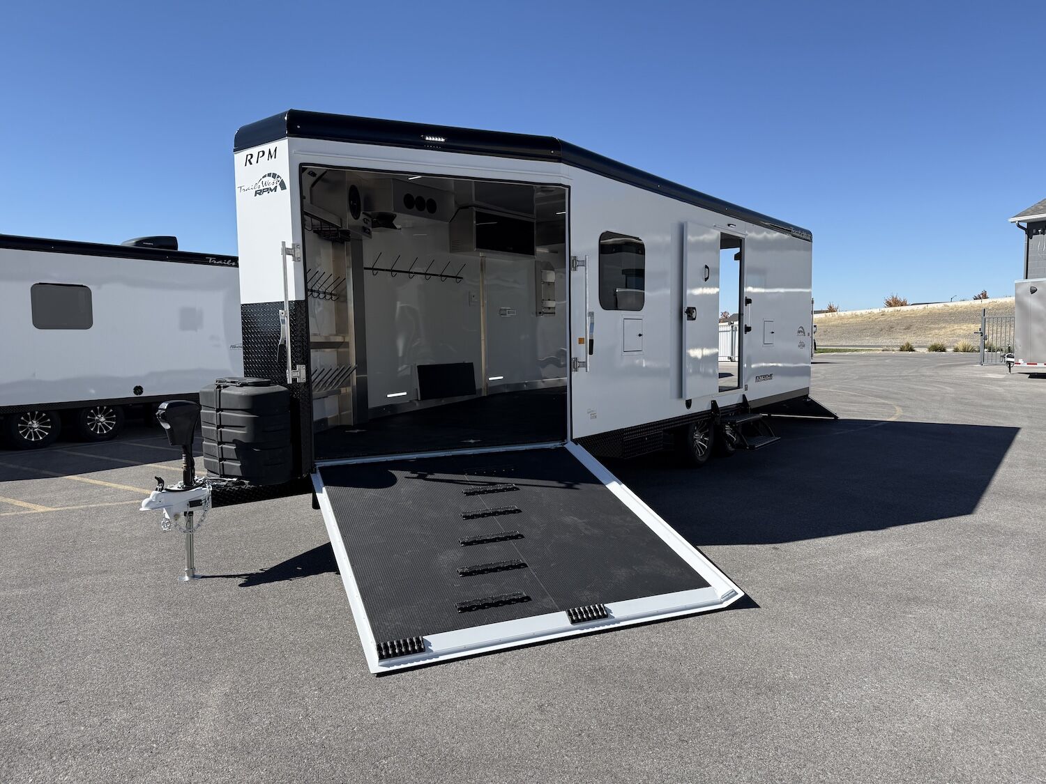 The 2026 RPM by Trails West is here!! Standard Features include a Double Step, Additional 4" of Interior Height, Aluminum Mill Finish on interior, Frameless Windows, and the newly added option of Protech Flooring! This new flooring eliminates the need of having ski glides in the box of the trailer and elevates the floor about 1/2" to keep you from standing in water when all of the snow is melting off your machines and gear! Packages we offer here at the dealership is our Life Elevated Package which includes: Propane Gauges, Garbage Can, Self-Retractable USB Charge Cables, and Ski Glides on the Front Ramp. We also offer Solar Packages to satisfy your needs of power off grid! With our level of expertise we can get you set up in a trailer specified for your needs for you to use for years to come! Come check us out! You won't regret it! The RPM Snowmobile Trailer from Trails West ensures that you travel in style while still being convenient and practical. It comes standard with the Roof and Walls Insulated, LED lights, 40,000BTU Furnace, Premium Stereo, Tons of Charging, a place to hang all your gear and much more. You can’t go wrong with this trailer! Swing on by to check it out for yourself!