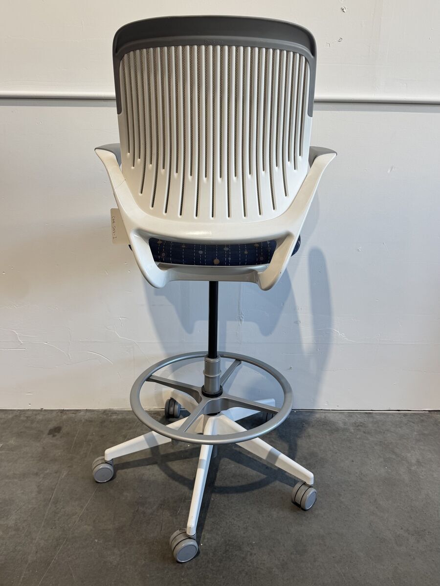 Office task stool with foot rest. Mesh and plastic back with upholstered cushion by Steelcase. 12 Stools available.